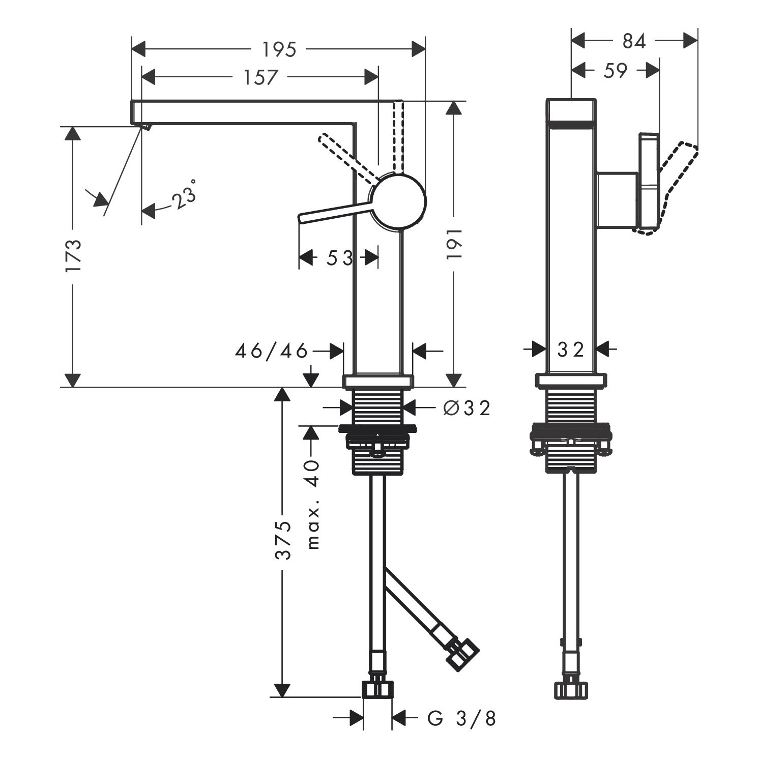 - einfach installiert: die Armatur wird über flexible Schläuche mit den Wasseranschlüssen verbunden (G 3/8)