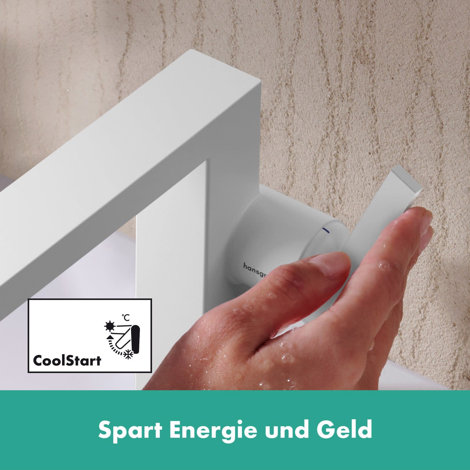 - extra nachhaltig: EcoSmart+ nutzt nur 4 l/min (bei 3 bar) und damit 20 % weniger Wasser als hansgrohe EcoSmart