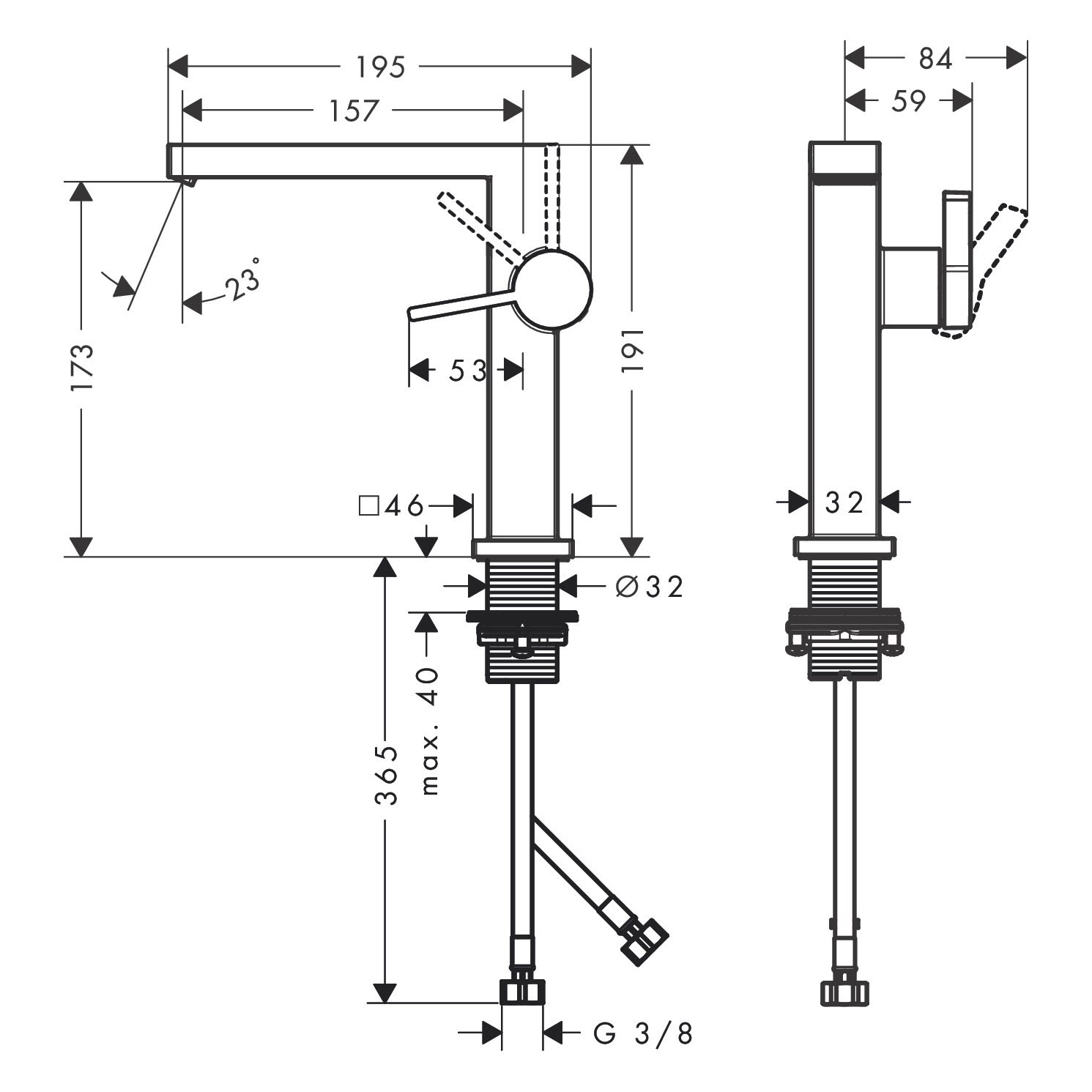 - einfach installiert: die Armatur wird über flexible Schläuche mit den Wasseranschlüssen verbunden (G 3/8)