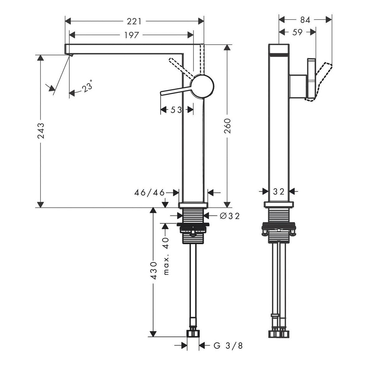 - einfach installiert: die Armatur wird über flexible Schläuche mit den Wasseranschlüssen verbunden (G 3/8)