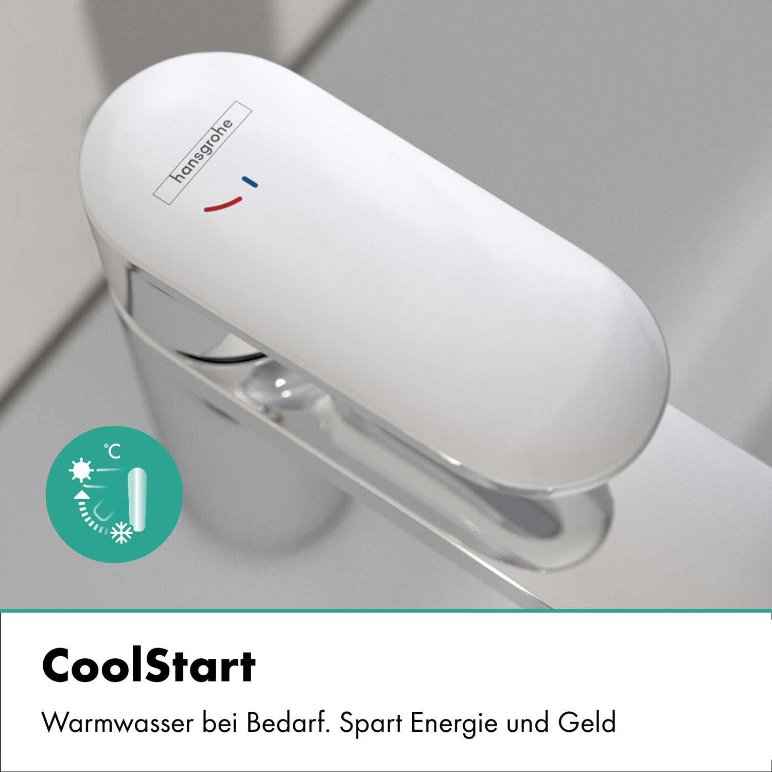 - Kosten im Griff: Steht der Hebel in der Mitte, kommt ausschließlich Kaltwasser. Erst wenn der Hebel nach links gedreht wird, fließt Warmwasser (CoolStart)