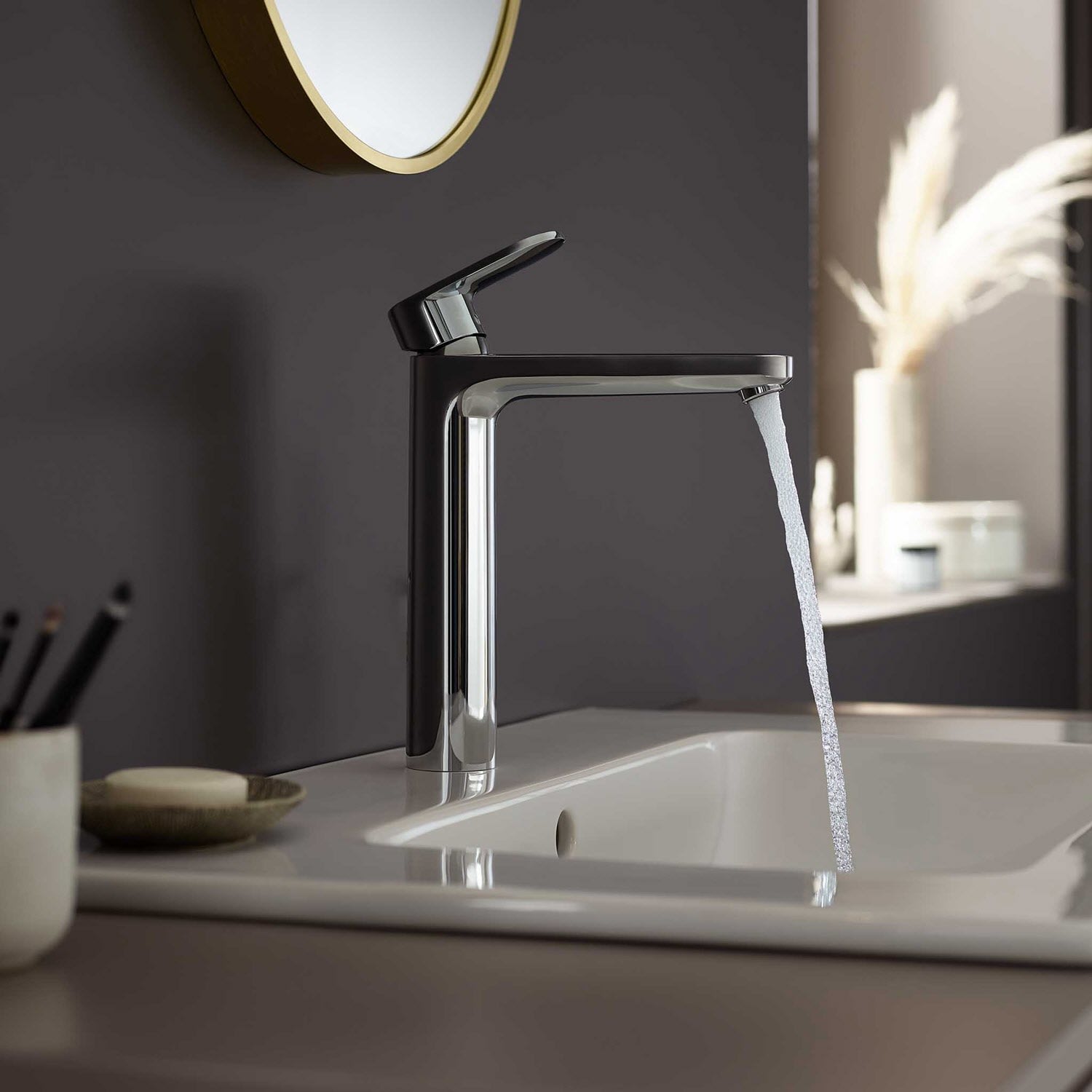 Der Vernis Einhebel-Waschtischmischer 190 CoolStart mit Push-Open-Ablaufgarnitur von hansgrohe passt durch seine Höhe gut zu einer freistehenden Waschschüssel. Die elegante Form ist zeitlos modern und strahlt Ruhe aus. Freuen Sie sich zudem auf zahlreiche Komfortfunktionen, mit denen Ihre neue Vernis Armatur Ihr Leben leichter macht.