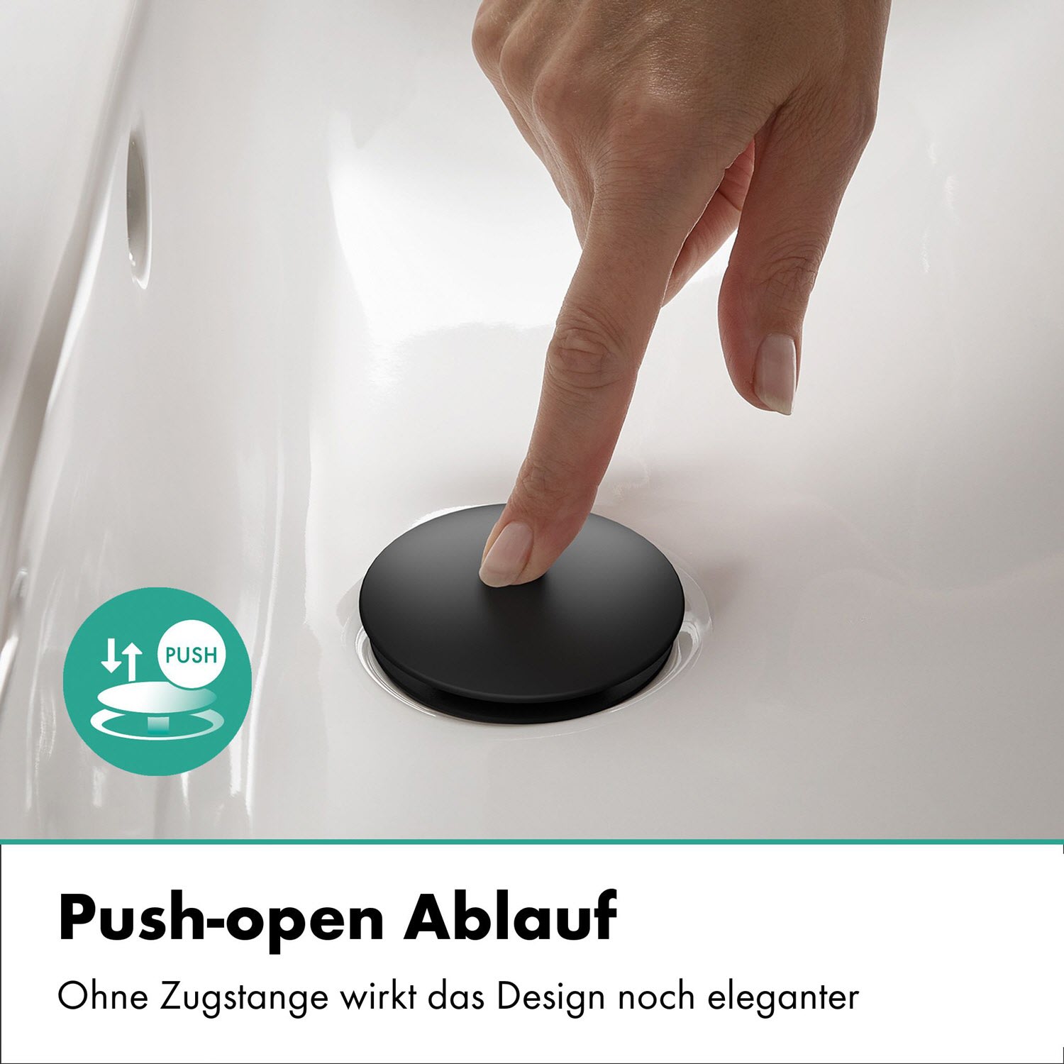 - Mit Ablaufgarnitur: Der Push-Open-Ablauf wird über einen Druckstopfen bedient. Ohne Hebel an der Rückseite wirkt das Design noch eleganter