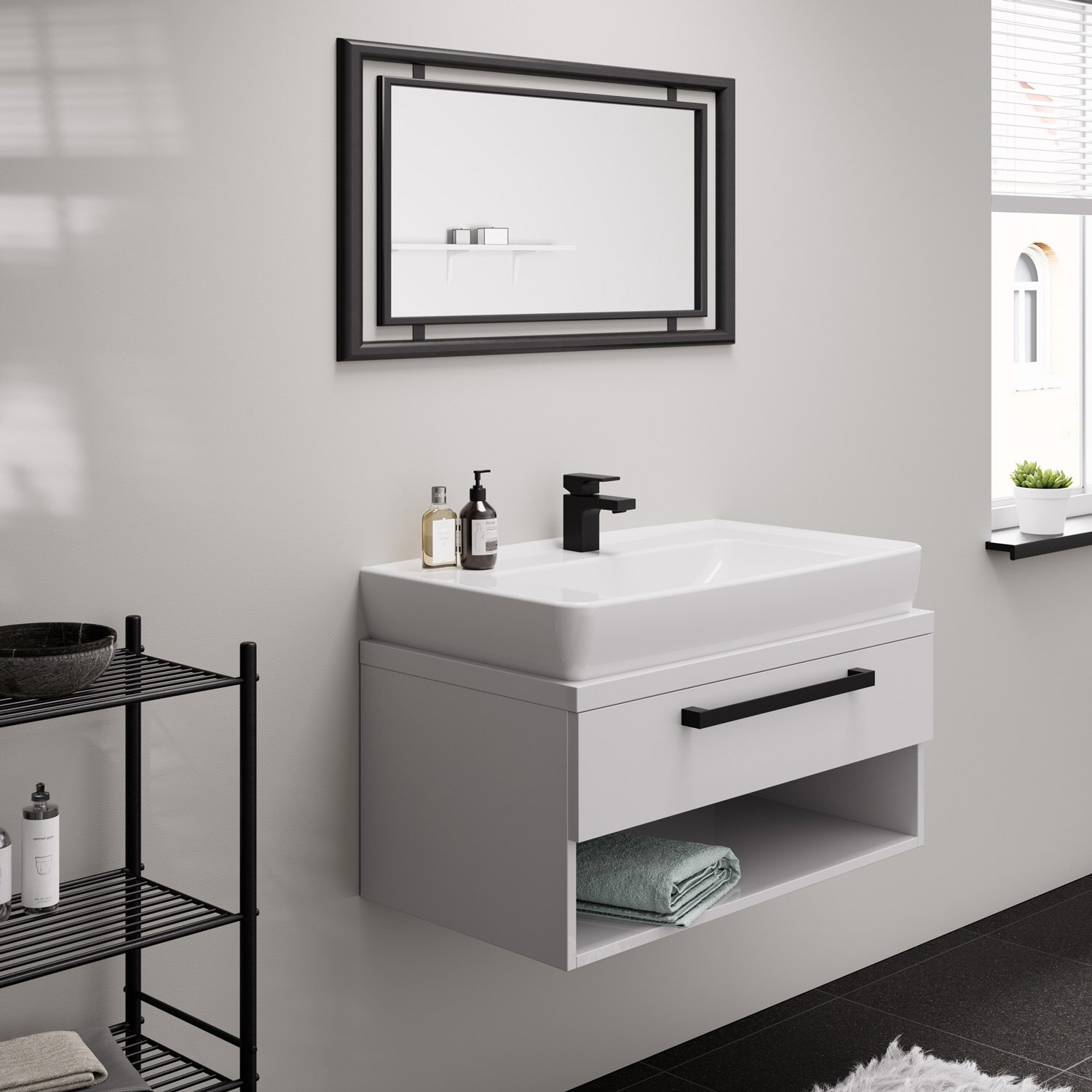 - Mit Ablaufgarnitur: Der Push-Open-Ablauf wird über einen Druckstopfen bedient. Ohne Hebel an der Rückseite wirkt das Design noch eleganter