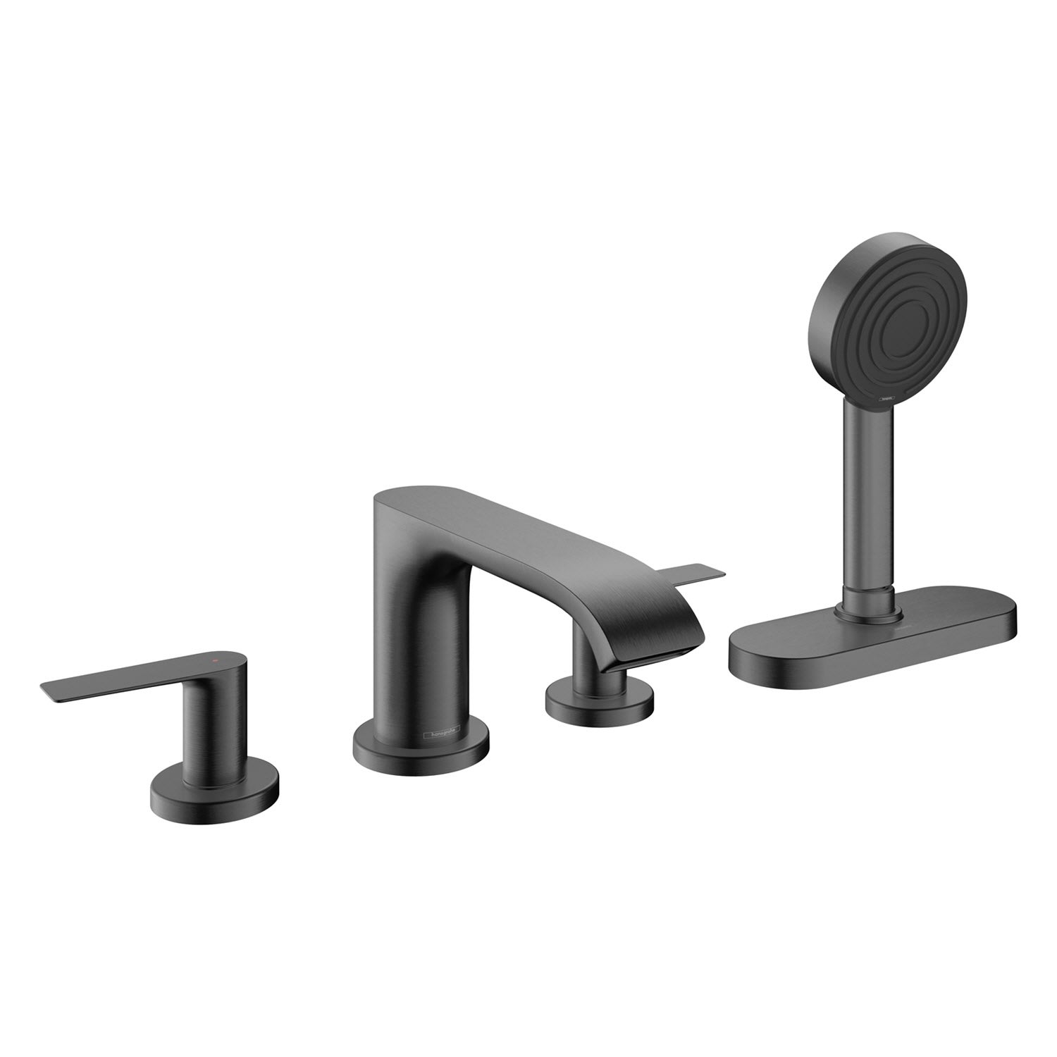 Die Vivenis 4-Loch-Wannenrandarmaturin Brushed Black Chrome von hansgrohe beeindruckt durch ihre harmonische Form und zaubert eine elegante Ästhetik ins Bad. Dank des Einbaus im Wannenrand bleibt mehr Platz und es entsteht ein ruhiges, aufgeräumtes Ambiente. Der breite Wasserstrahl wirkt wie ein kleiner Wasserfall und bietet zusammen mit der Schlauchbox (hansgrohe sBox) für den Duschkopf immer wieder aufs Neue ein besonderes Erlebnis.