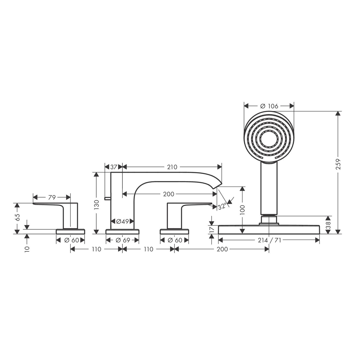 hansgrohe Vivenis 4-Loch Wannenrandarmatur mit Schlauchbox (sBox)