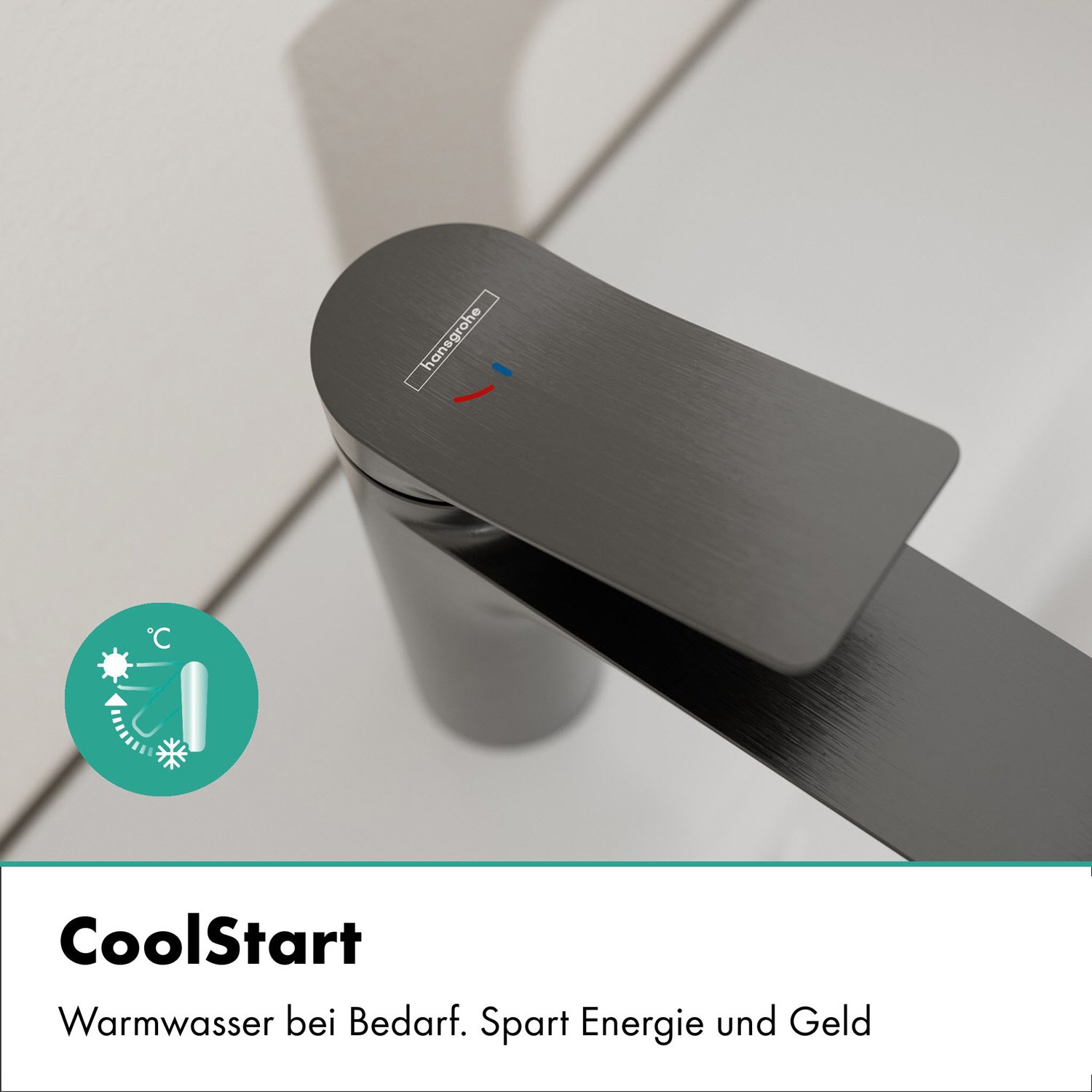 - Energie sparen: Steht der Hebel in der Mitte, kommt ausschließlich Kaltwasser. Erst wenn er nach links gedreht wird, fließt Warmwasser (CoolStart)
