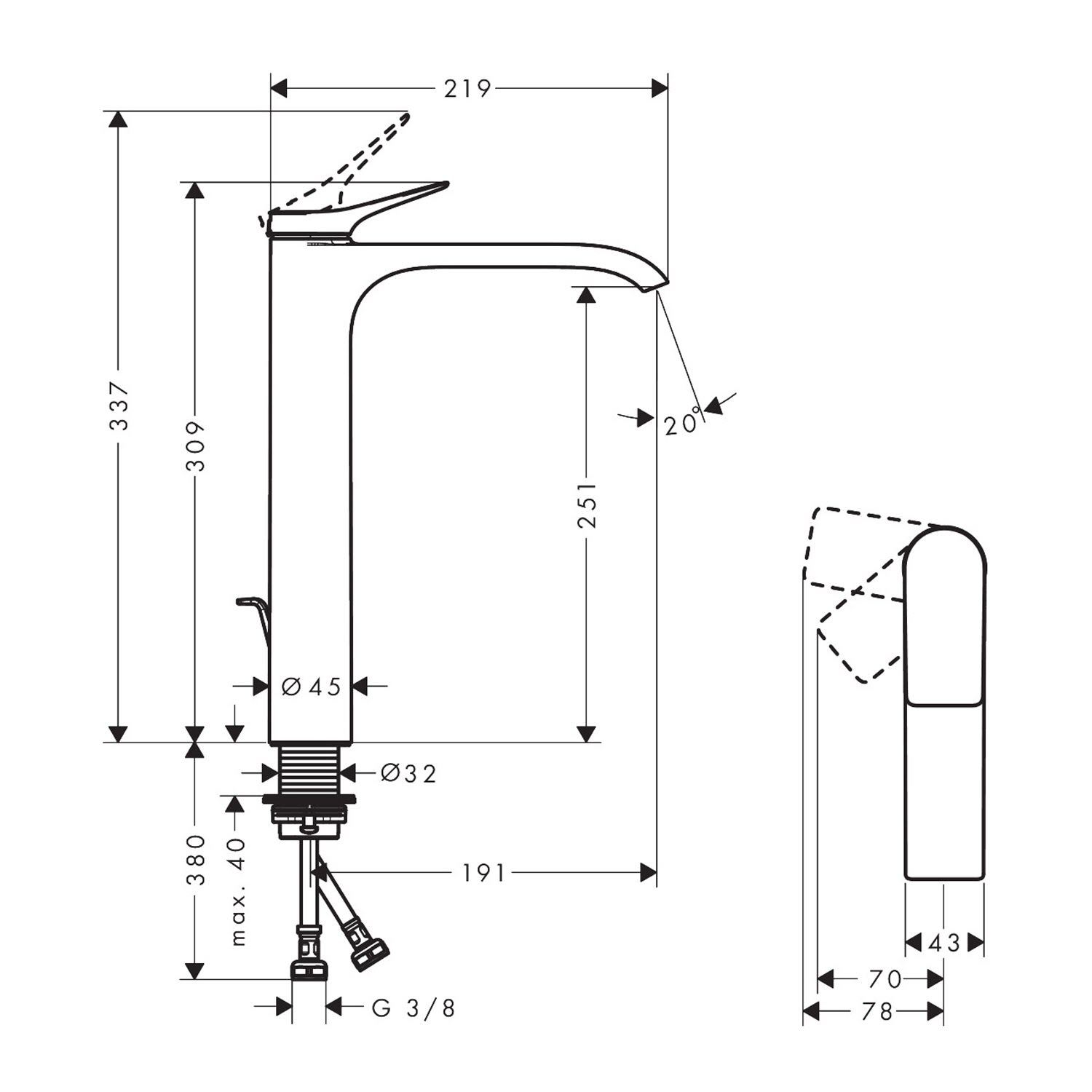 Ideal für eine Waschschüssel: Hoher Einhebelmischer mit CoolStart und extra breitem Wasserstrahl