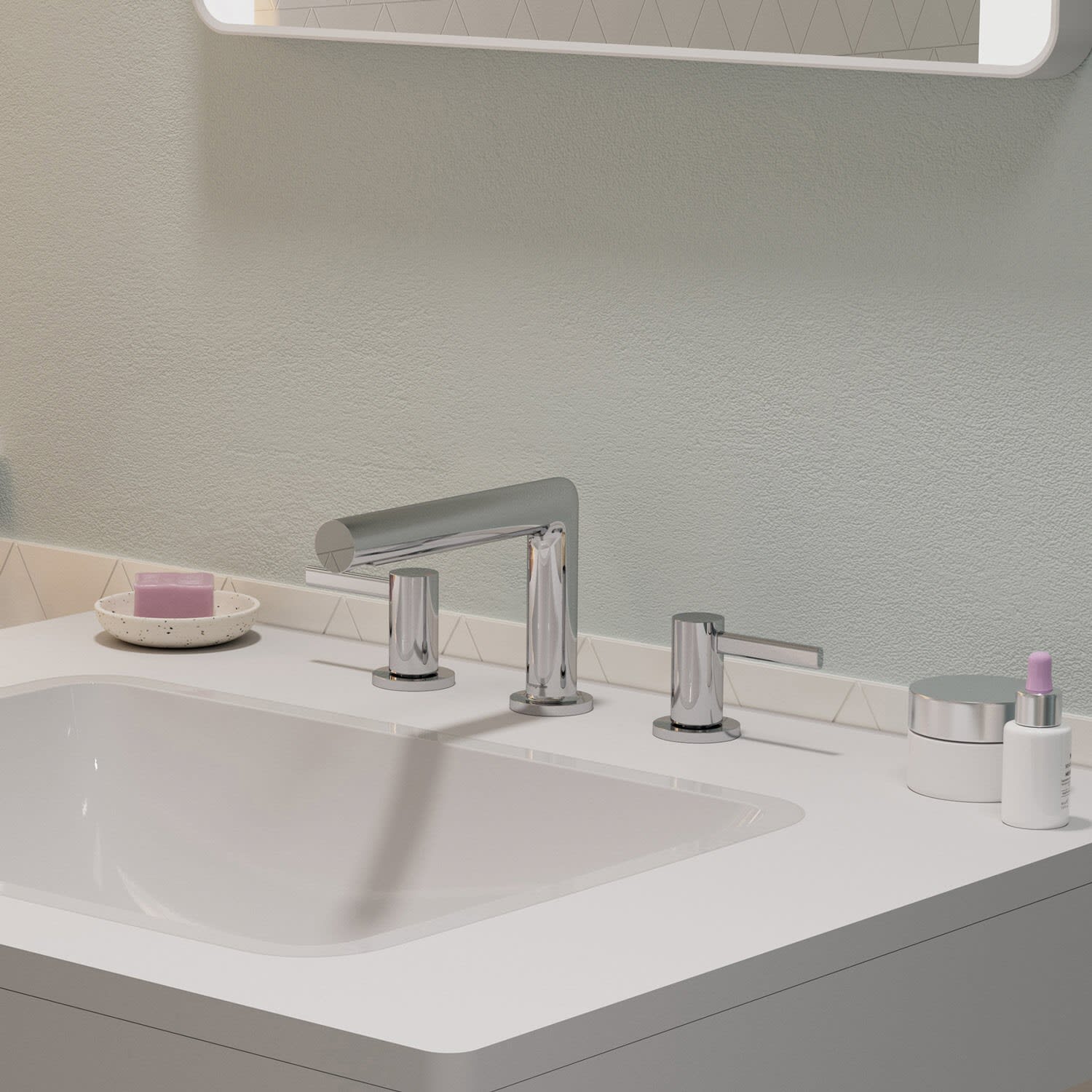 Die wassersparende 3-Loch-Waschtischarmatur Zesis S 100 mit Zugstangen-Ablaufgarnitur von hansgrohe wertet Ihr Bad durch die klassische Steuerung über zwei getrennte Griffe sichtbar auf. Die geometrische Gestaltung dieser Armaturenlinie wurde auf das Wesentliche reduziert und strahlt Ruhe aus. So bildet hansgrohe Zesis S den perfekten Mittelpunkt für Ihre Oase der Erholung. Mit dieser zeitlosen Formensprache schafft die Armatur ein gelungenes Badambiente, das über viele Jahre seinen eindrucksvollen Charakter bewahren wird.
