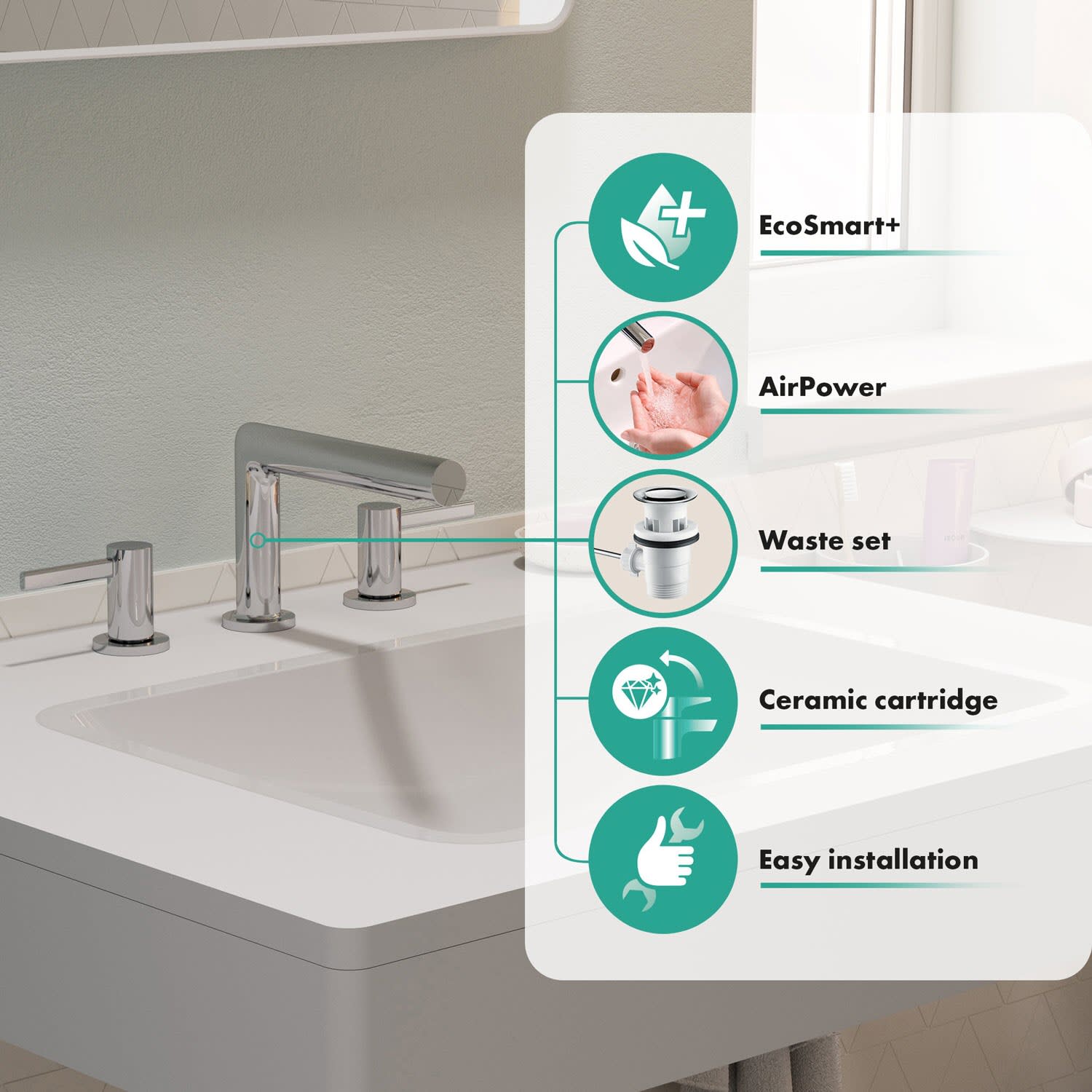 hansgrohe Zesis S 3-Loch Waschtischarmatur 100 mit Zugstangen-Ablaufgarnitur
