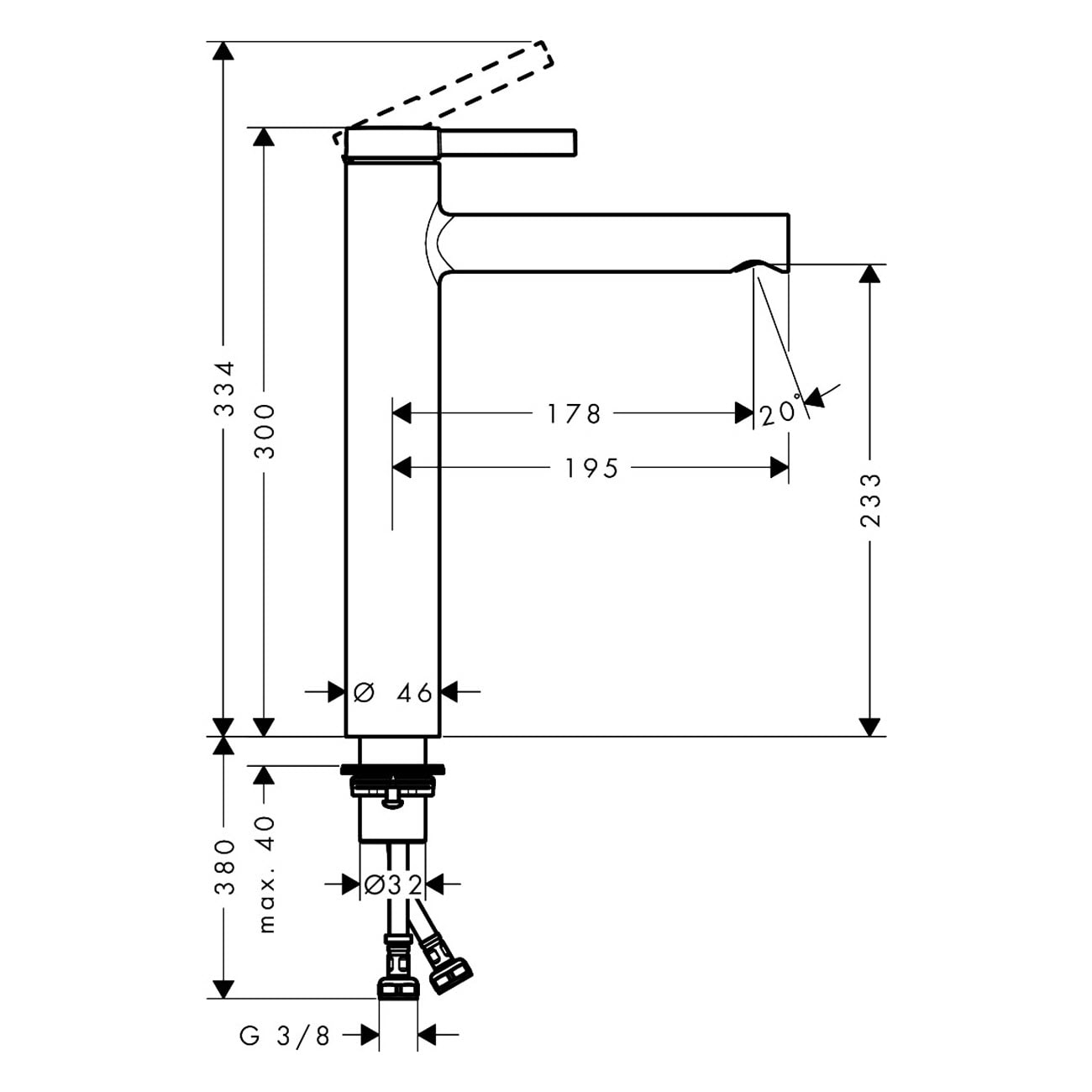 - flexible Anschlussschläuche erleichtern die Montage (Größe: G3/8)