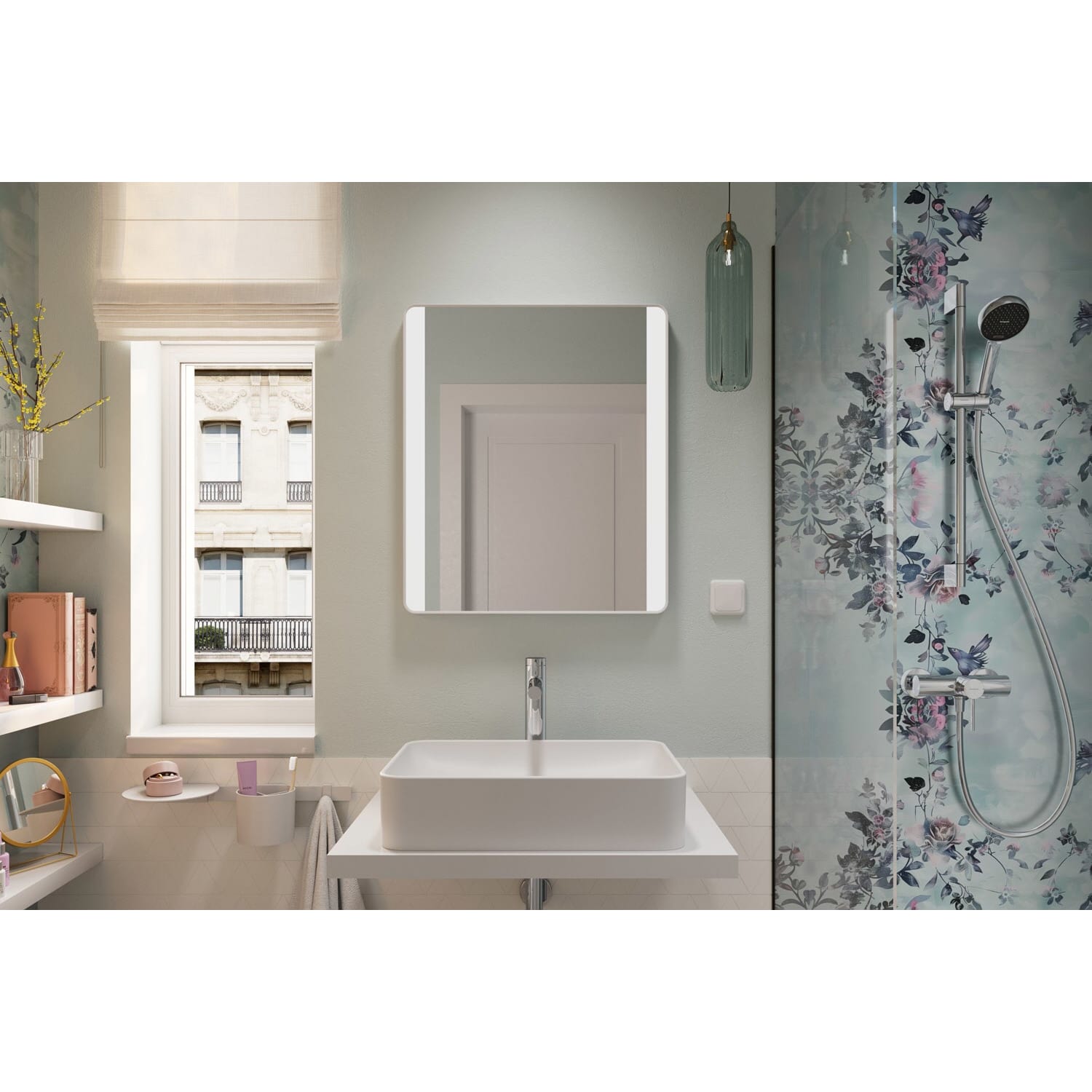 Kronenbach Sun Badspiegel 60 x 80 cm mit LED Seiten- und Hintergrundbeleuchtung
