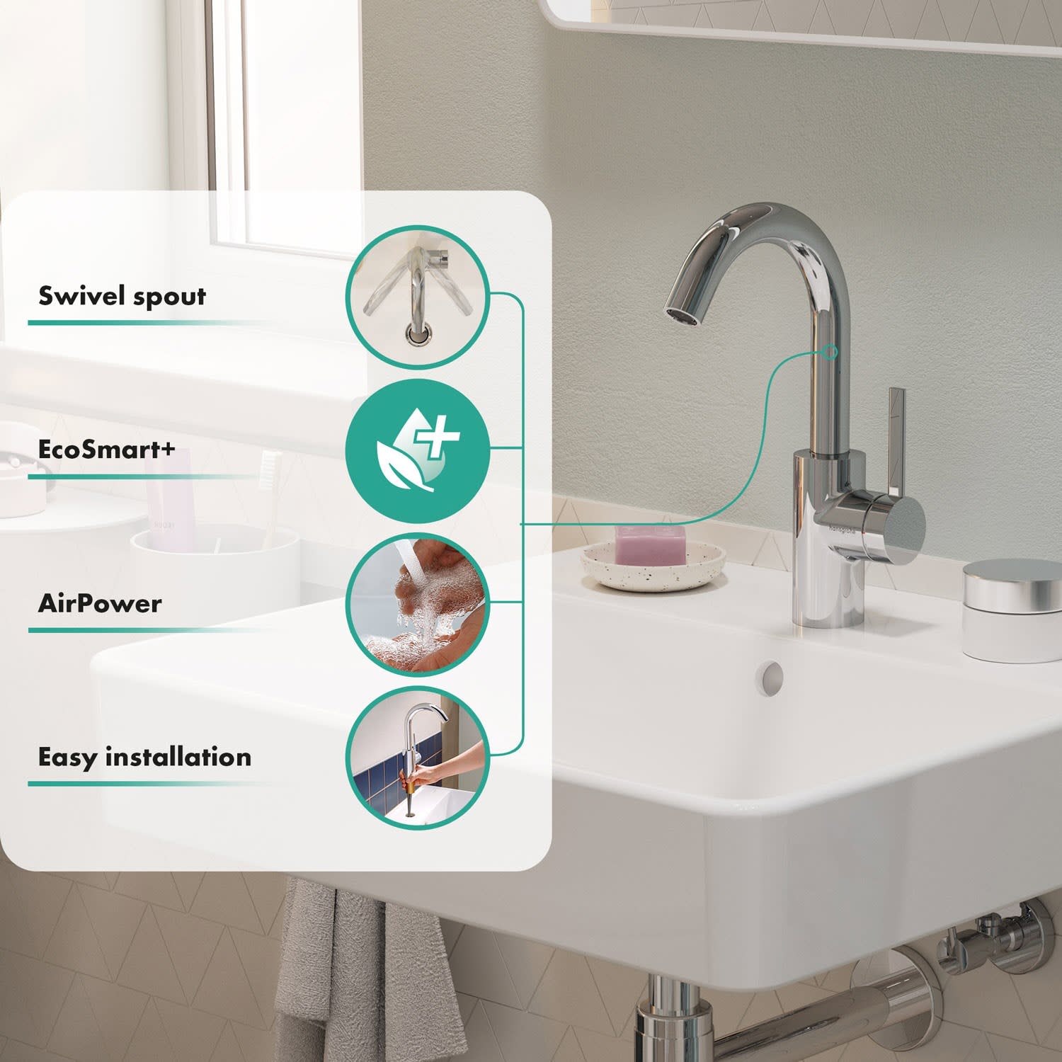 Tipp: Kombinieren Sie die Waschtischarmatur mit weiteren Produkten von hansgrohe, um ein harmonisches Gesamtbad zu gestalten.