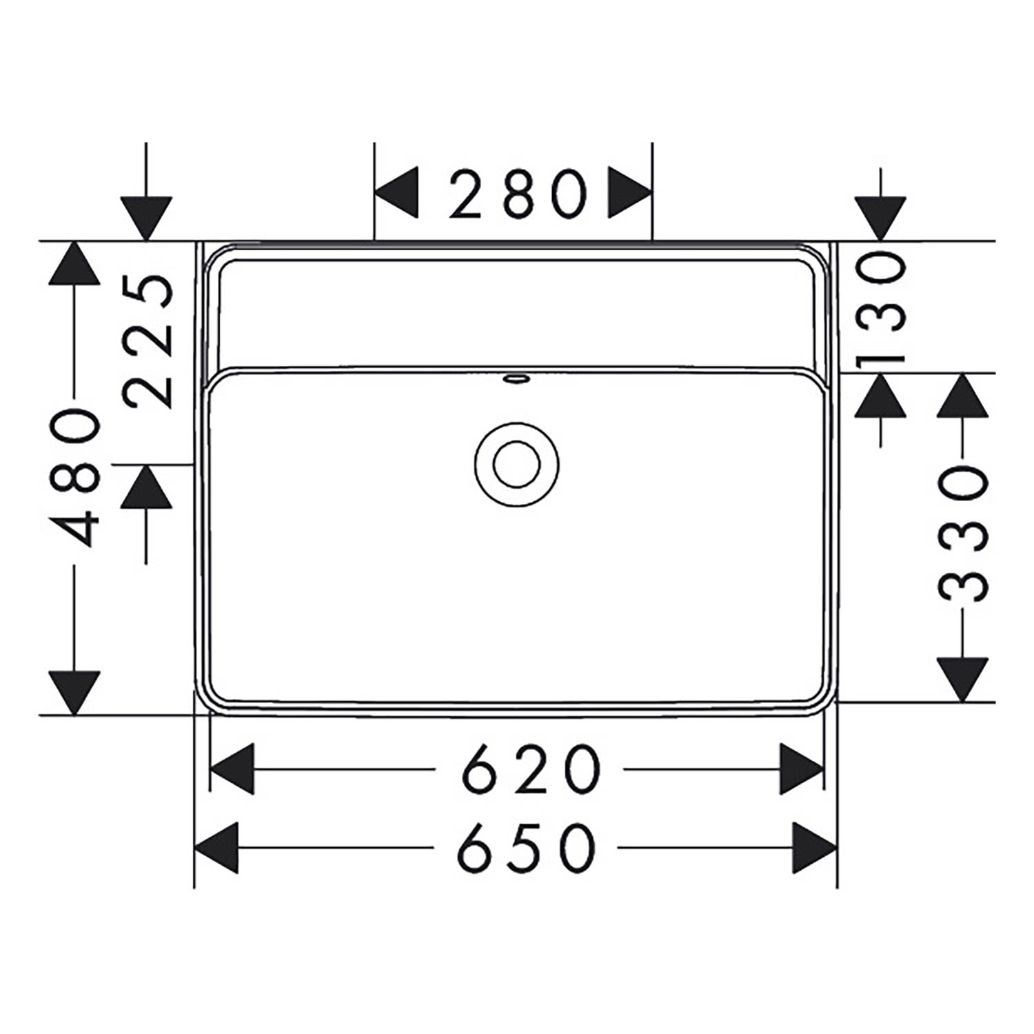 hansgrohe Xanuia Q Aufsatzwaschtisch geschliffen 650/480 ohne Hahnloch mit Überlauf