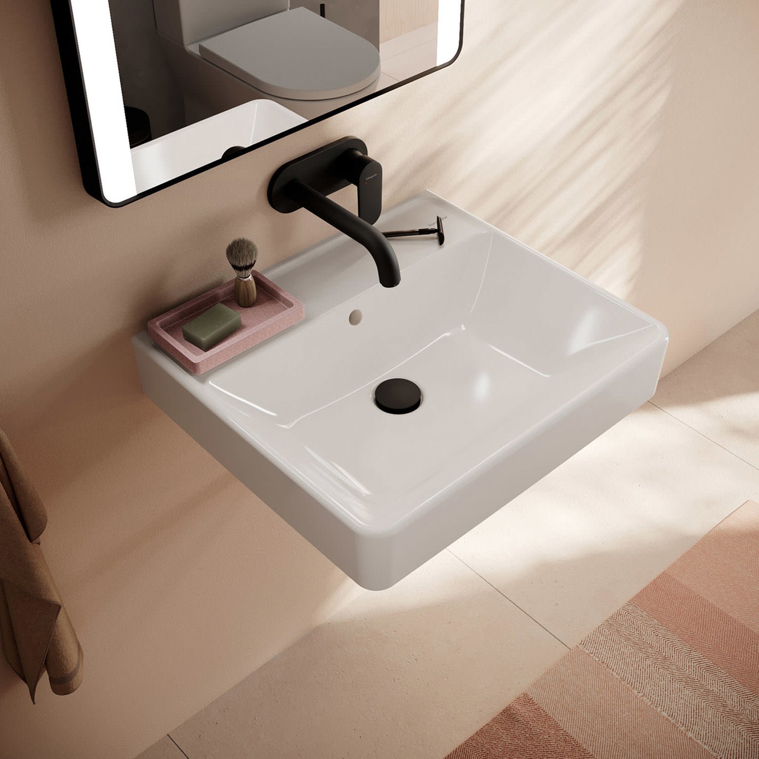 - ohne Hahnloch – für wandmontierte oder freistehende Armaturen geeignet