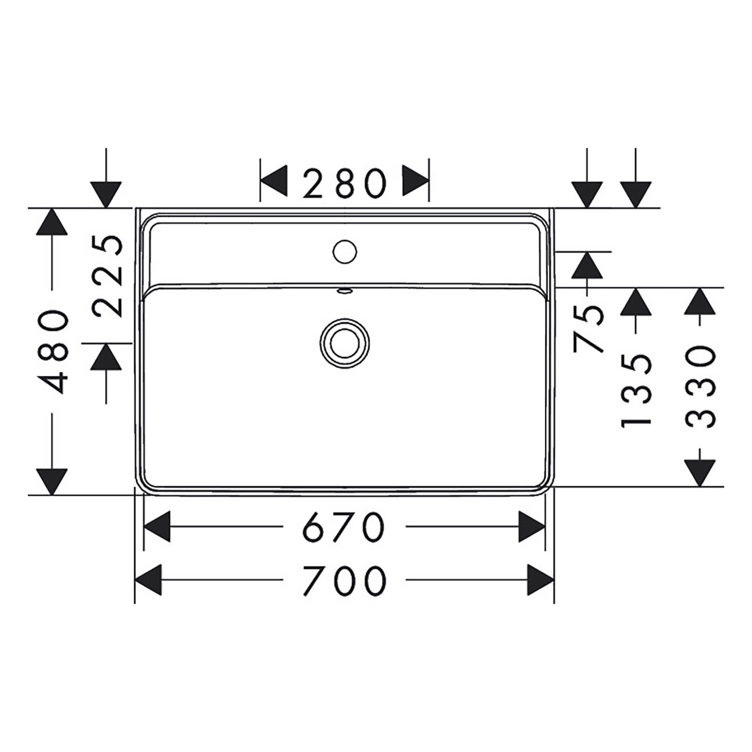 hansgrohe Xanuia Q Waschtisch 700/480 mit Hahnloch und Überlauf