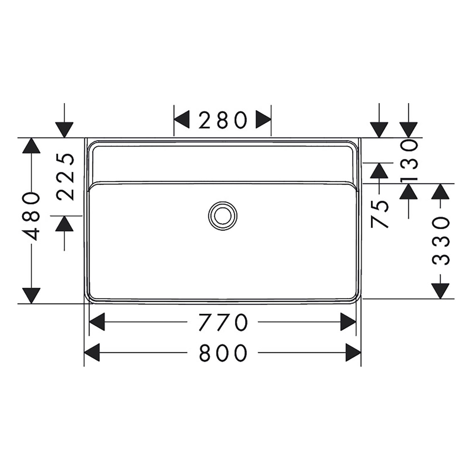 hansgrohe Xanuia Q Waschtisch 800/480 ohne Hahnloch und Überlauf