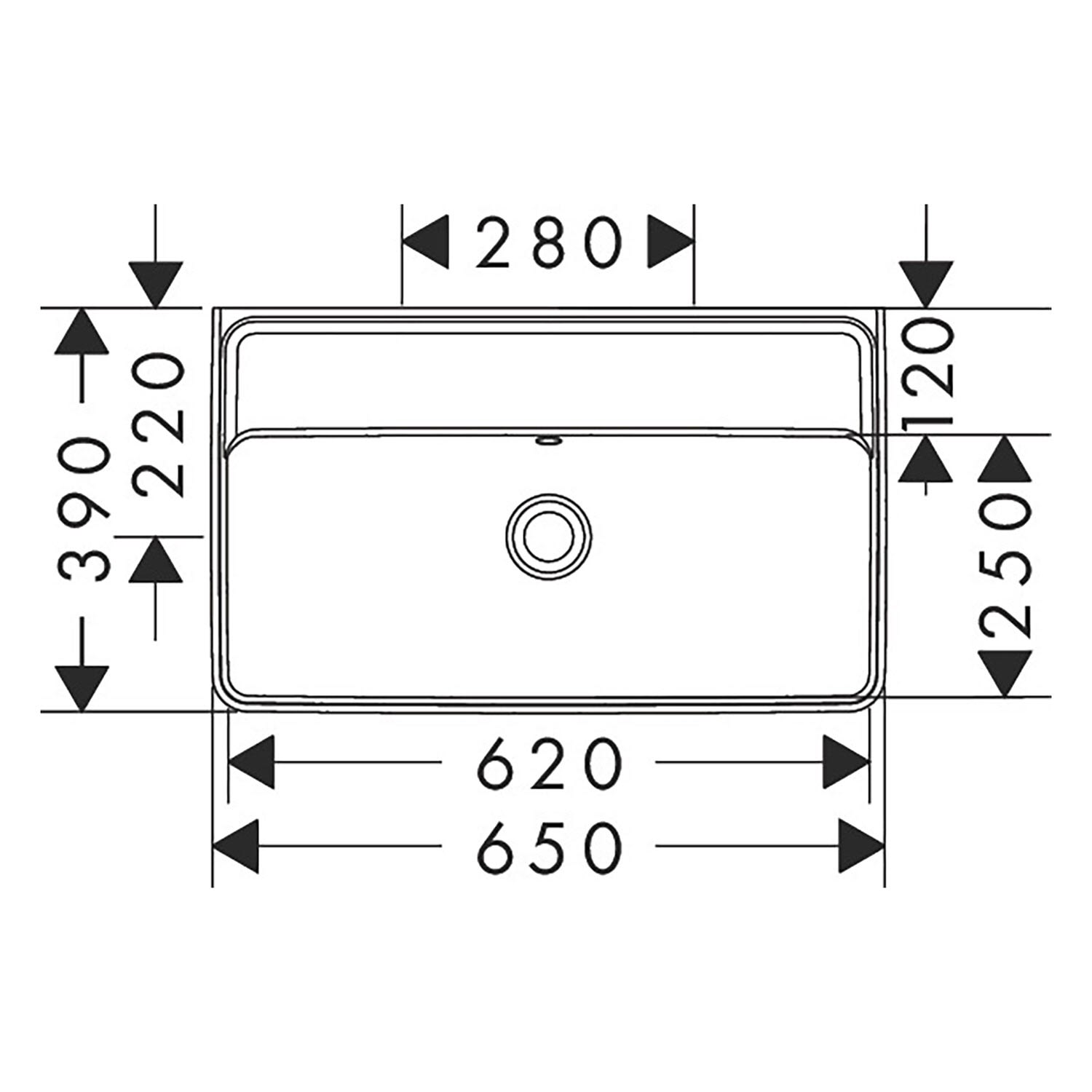 - ohne Hahnloch – für wandmontierte oder freistehende Armaturen geeignet