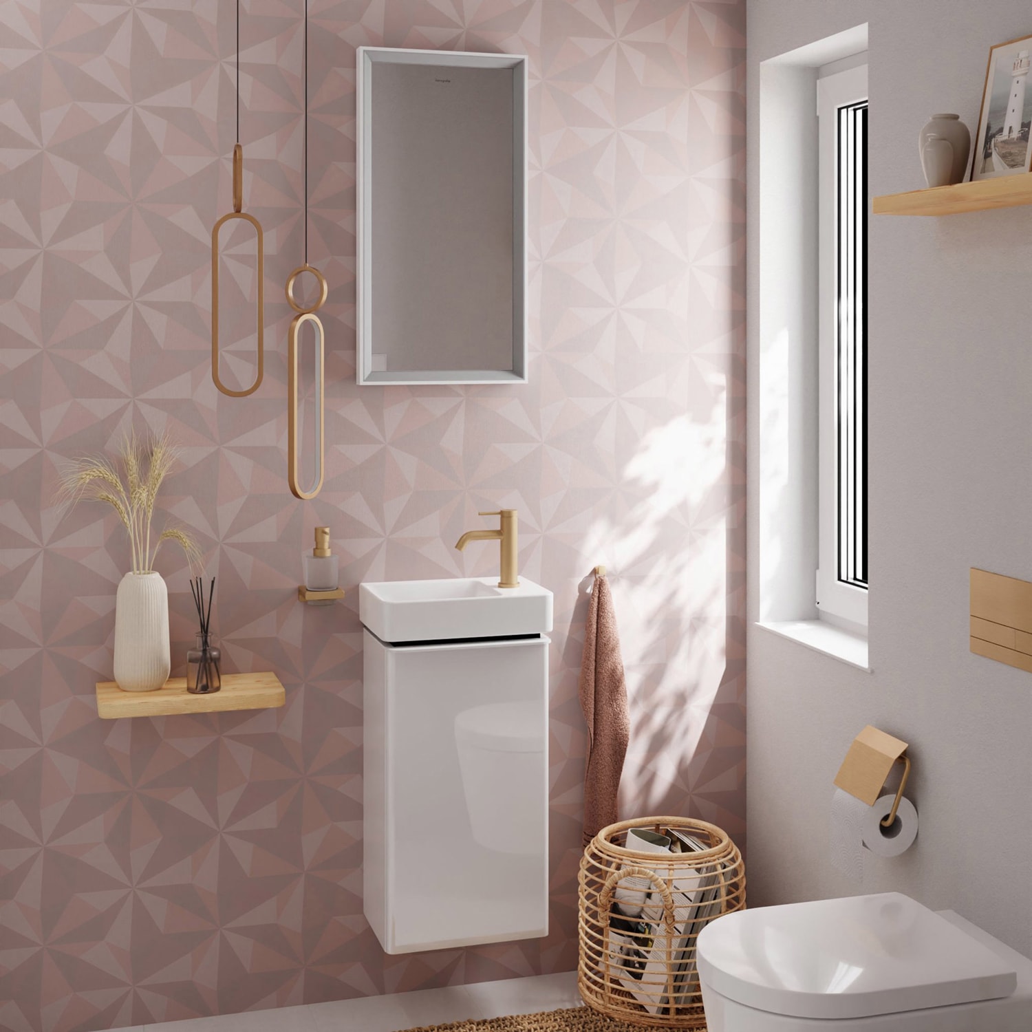 Für ein harmonisches Bad-Ambiente kombinieren Sie das Waschbecken mit einem perfekt auf das Design abgestimmten Badmöbel von hansgrohe. Alternativ lässt sich die Keramik auch frei an der Wand montieren.