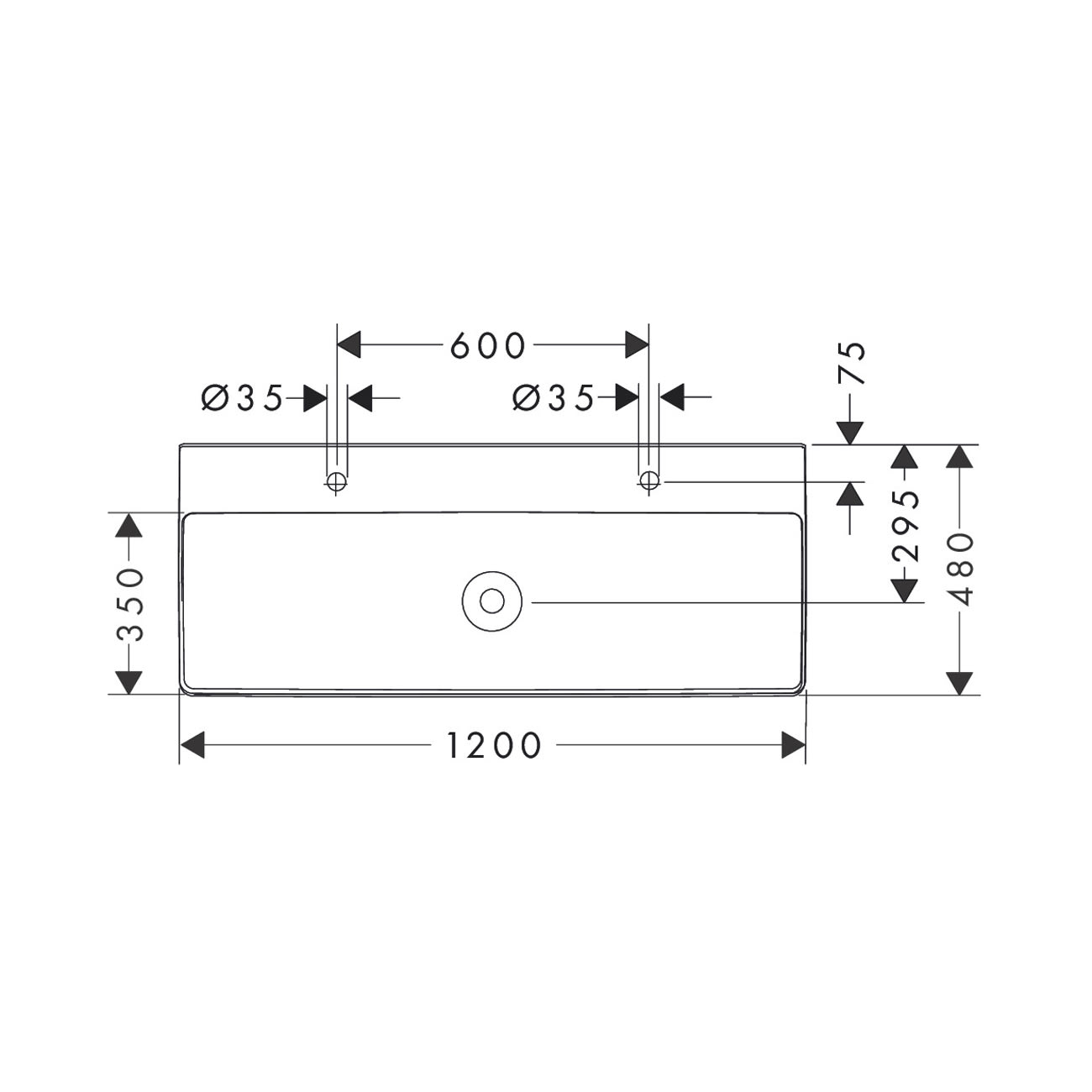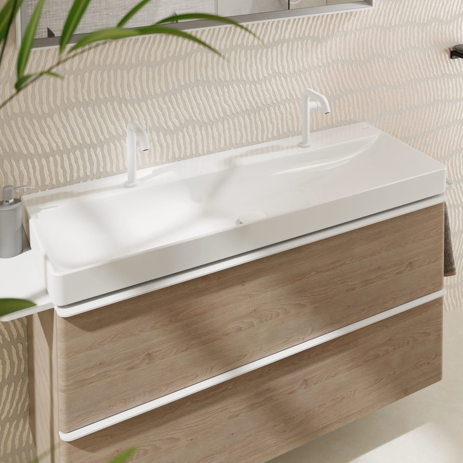 hansgrohe Xelu Q Waschbecken 120 x 48 cm ungeschliffen, mit 2x 1 Hahnloch