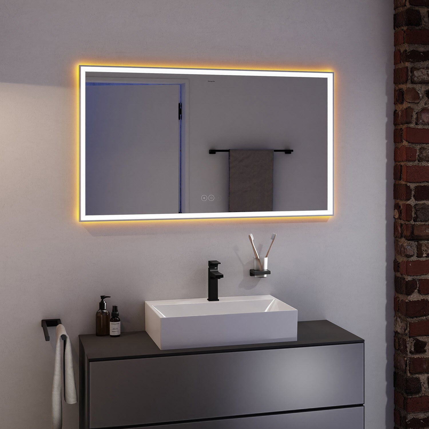 hansgrohe Xarita E Badspiegel 120 x 70 cm mit kapazitivem Berührungssensor in Mattweiß