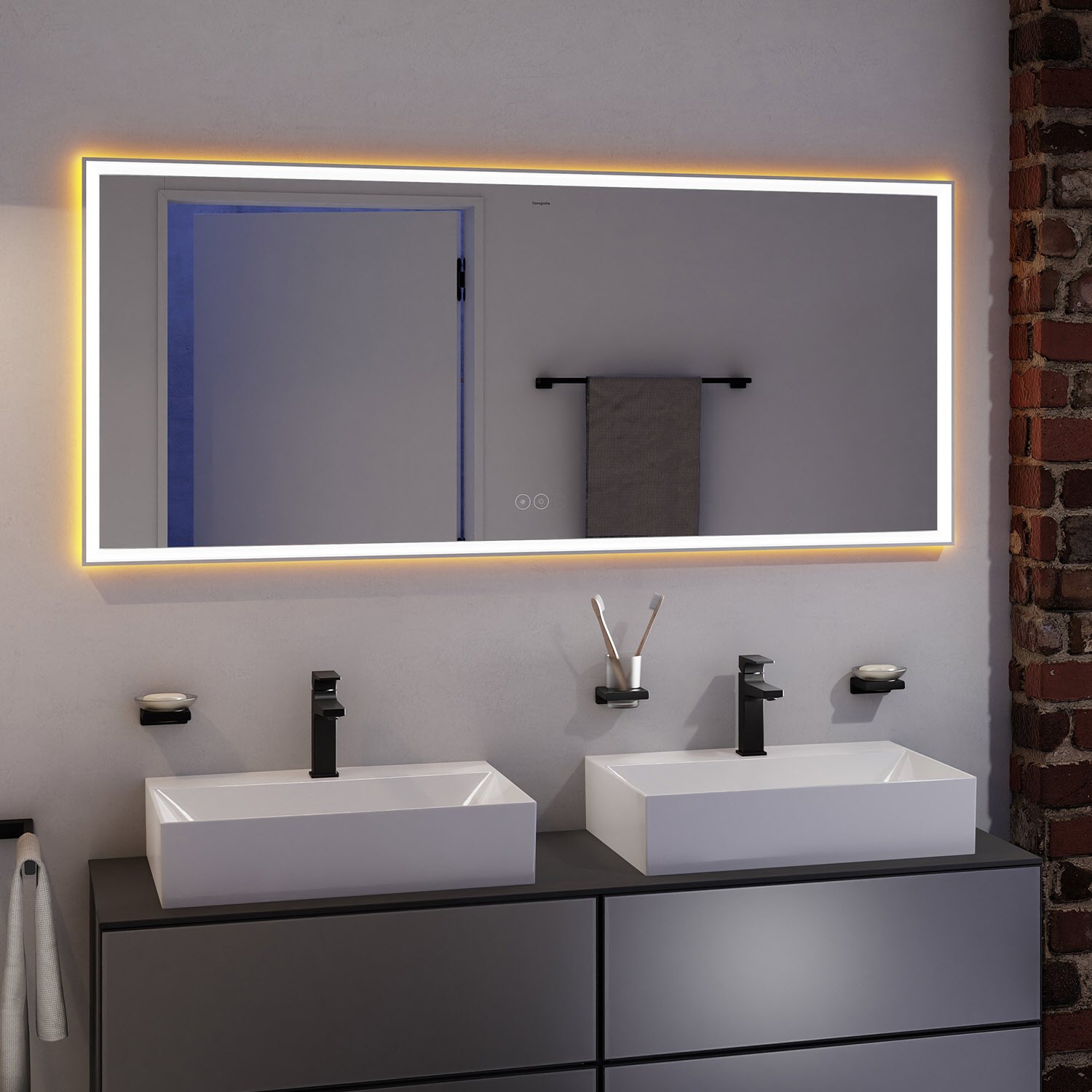 hansgrohe Xarita E Badspiegel 160 x 70 cm mit kapazitivem Berührungssensor in mattweiß
