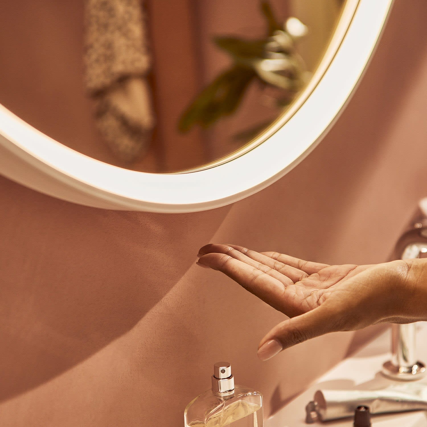 hansgrohe Xarita S Badspiegel Ø 70 cm mit Infrarot-Sensor in mattweiß