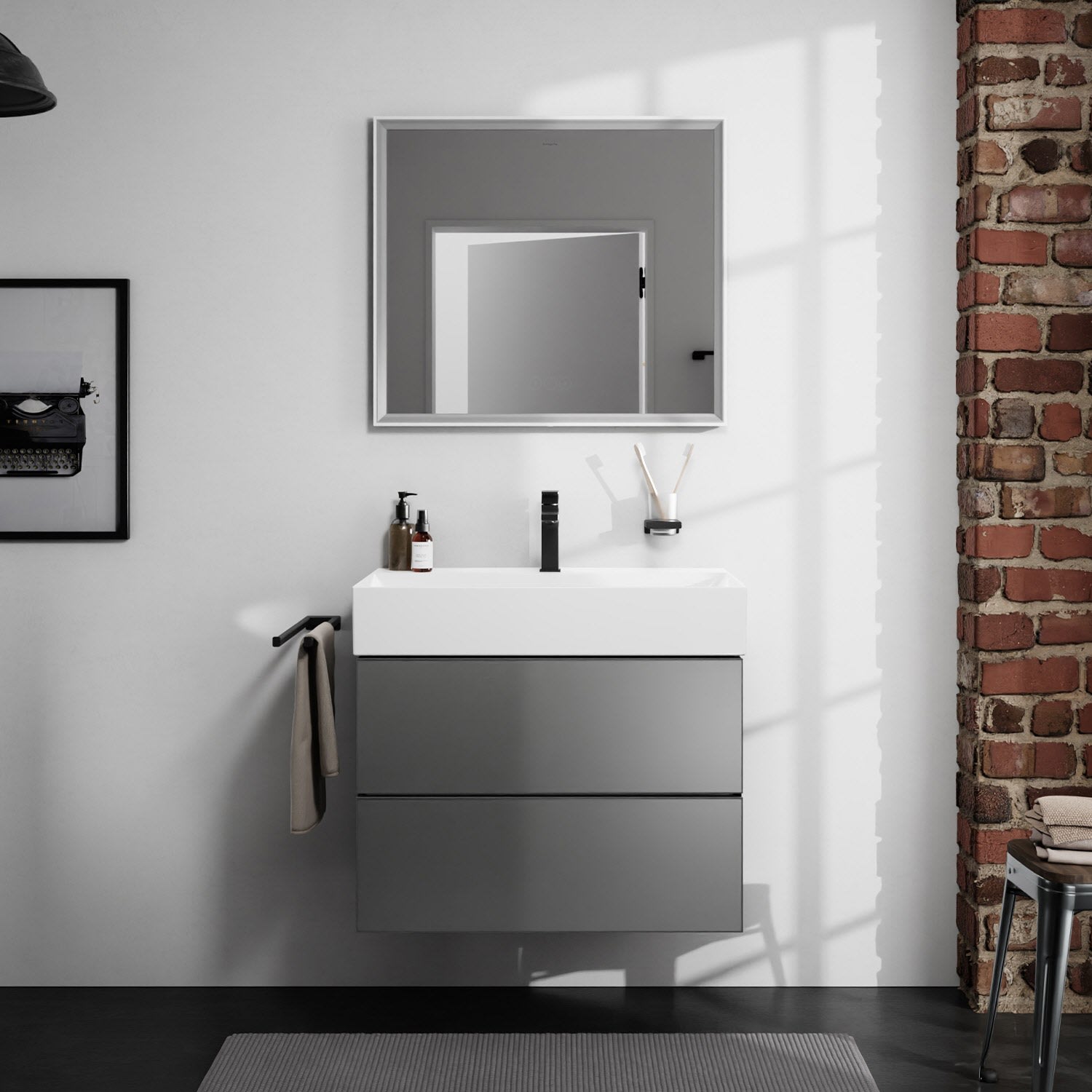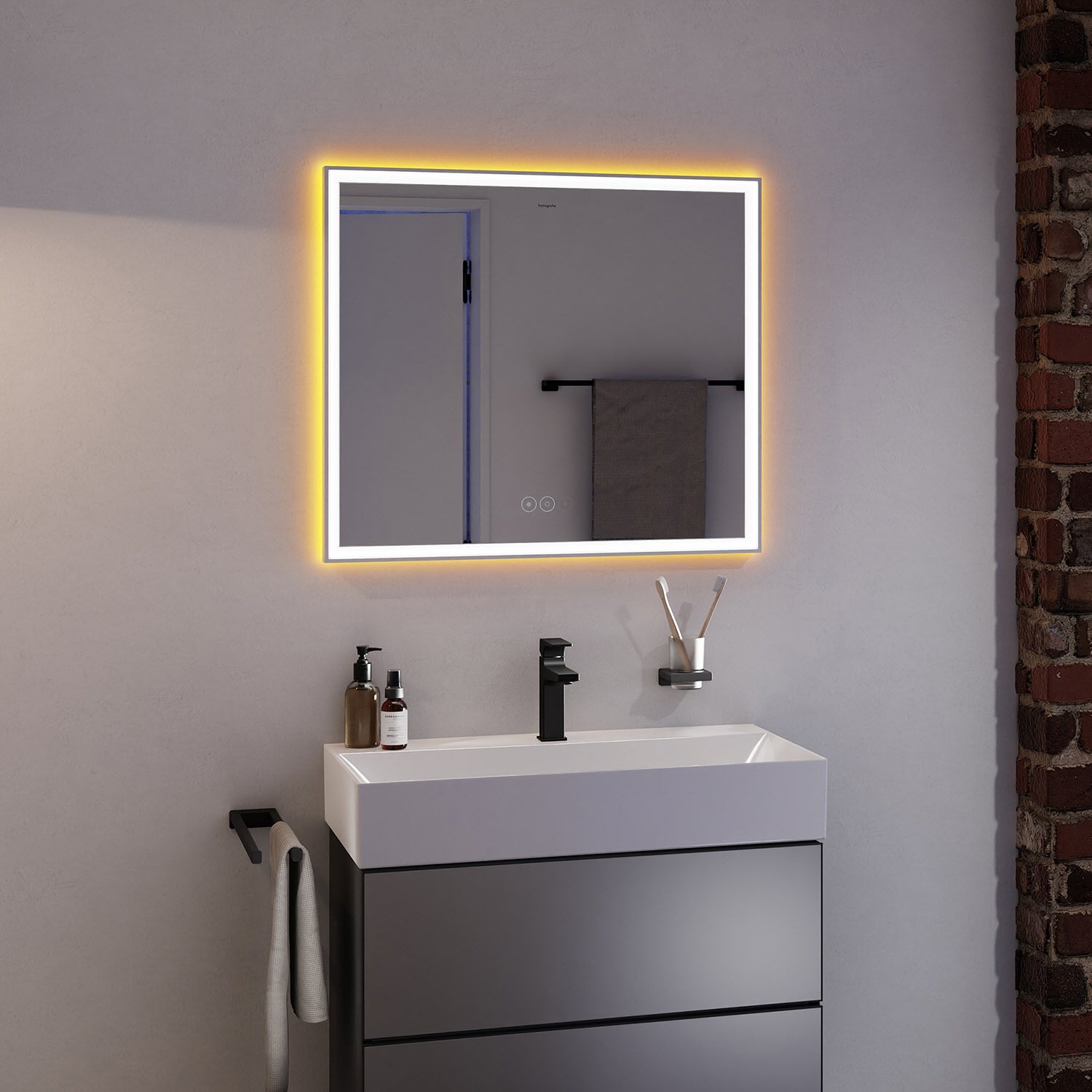 hansgrohe Xarita E Badspiegel 80 x 70 cm mit kapazitivem Berührungssensor in mattweiß