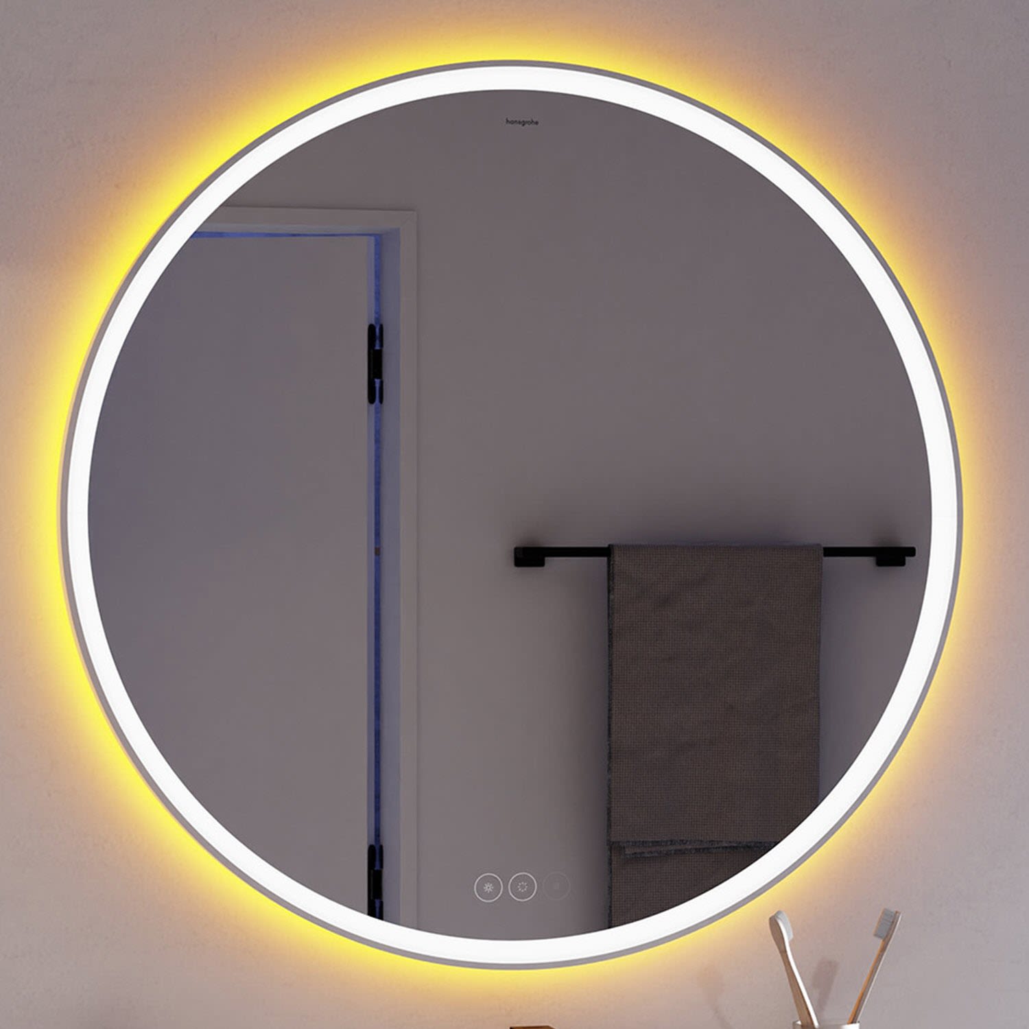 hansgrohe Xarita S Badspiegel Ø 90 cm mit Berührungssensor in Mattweiß