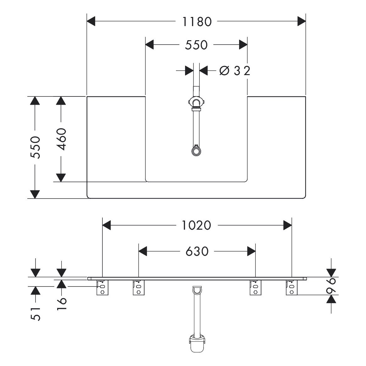 hansgrohe Xelu Q Konsole mit Ausschnitt mittig 118 x 55 cm, für Aufsatzwaschtisch geschliffen 60 x 48 cm