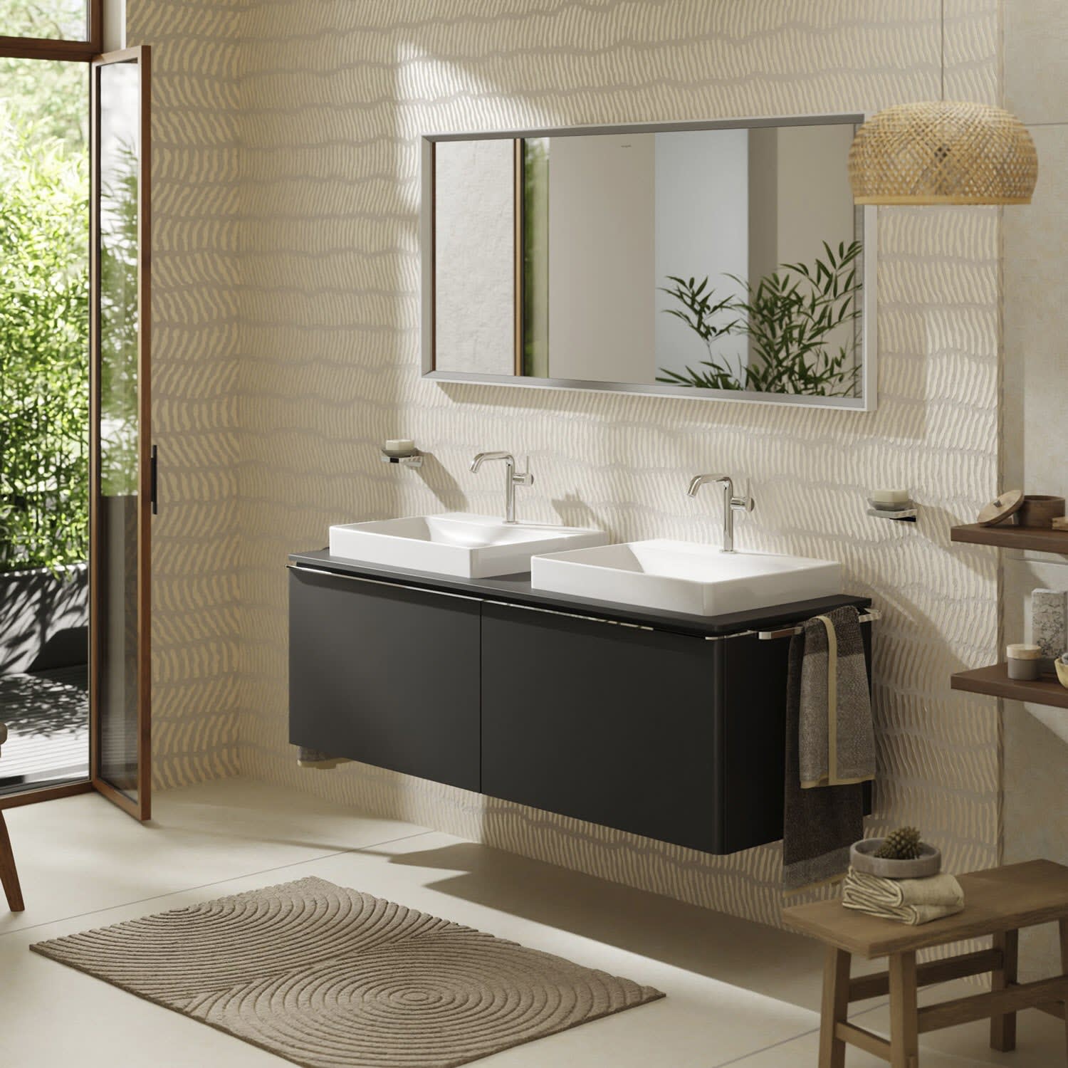 hansgrohe Xelu Q Konsole mit 2 Ausschnitten 156 x 55 cm, für Aufsatzwaschtisch geschliffen 60 x 48 cm