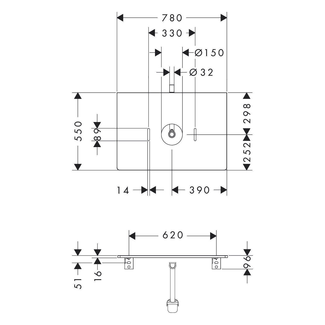hansgrohe Xelu Q Konsole mit Ausschnitt mittig 78 x 55 cm, für Aufsatzwaschtisch ohne Hahnloch