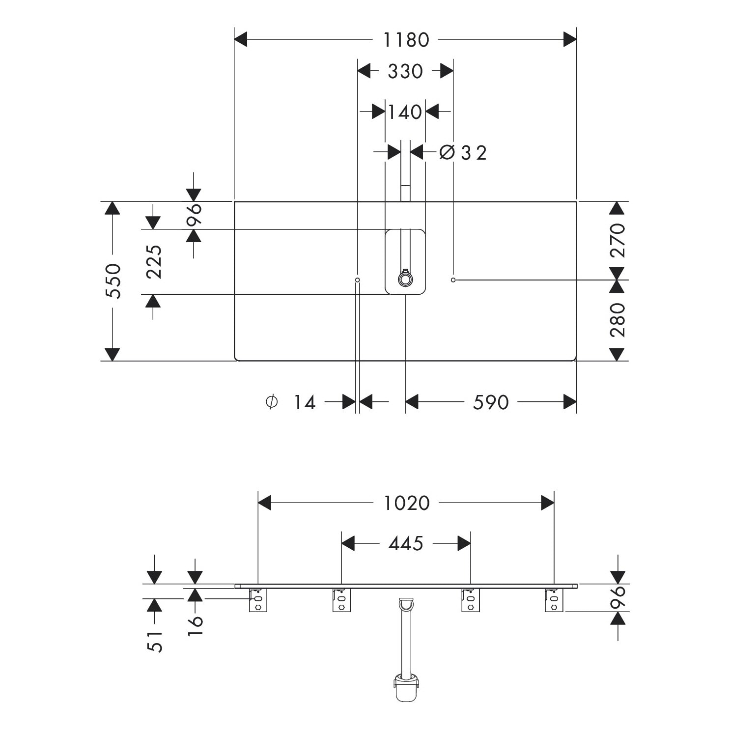 hansgrohe Xelu Q Konsole mit Ausschnitt mittig 118 x 55 cm, für Aufsatzwaschtisch mit Hahnloch