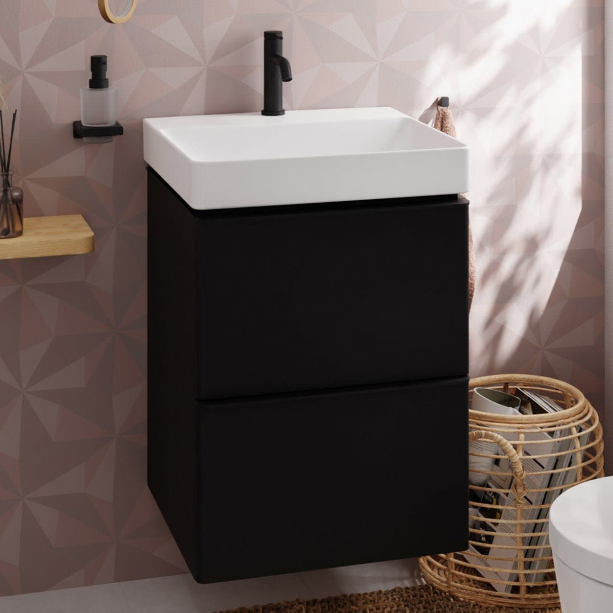 hansgrohe Xelu Q Waschtischunterschrank 48 x 60,5 cm, 2 Schubkästen, Griff mattschwarz