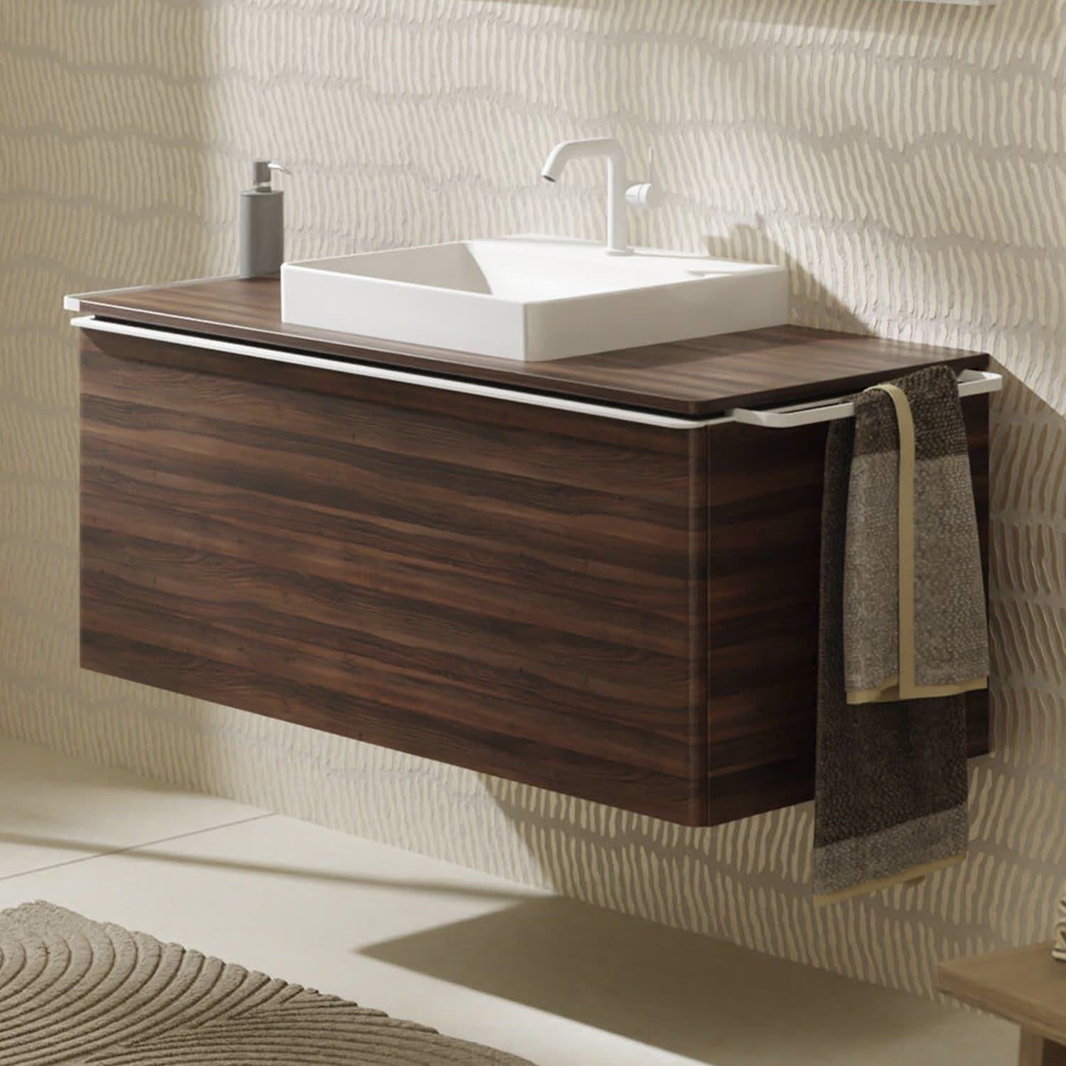 Optional möglich sind Xelu Q Möbelfüße, Handtuchhalter, Ablage und IntraStoris Zubehörteile.