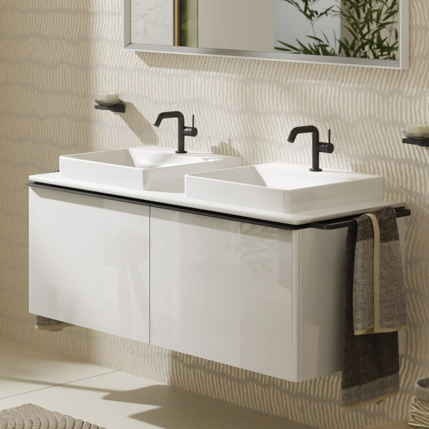 hansgrohe Xelu Q Waschtischunterschrank für Konsole 136 x 48,5 cm, 2 Schubkästen, Griff mattschwarz