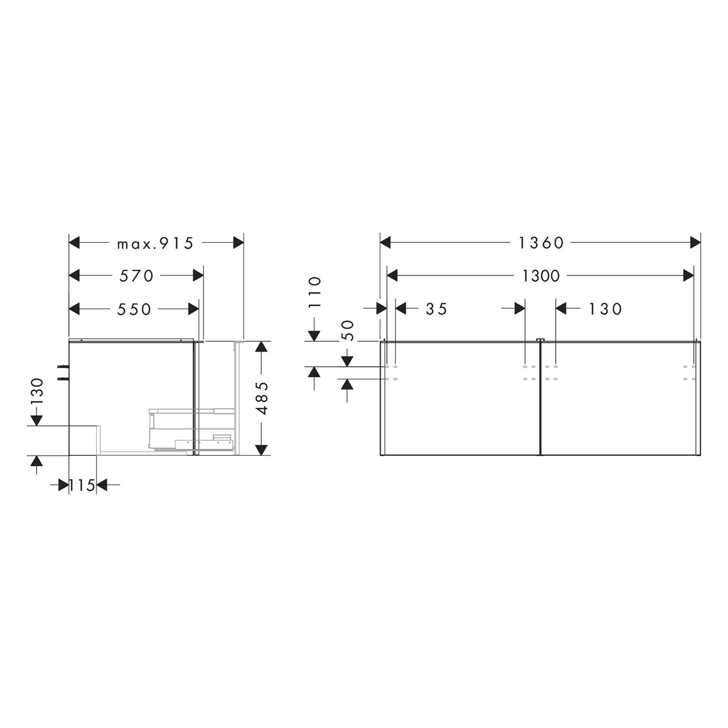 hansgrohe Xelu Q Waschtischunterschrank für Konsole 136 x 48,5 cm, 2 Schubkästen, Griff mattschwarz