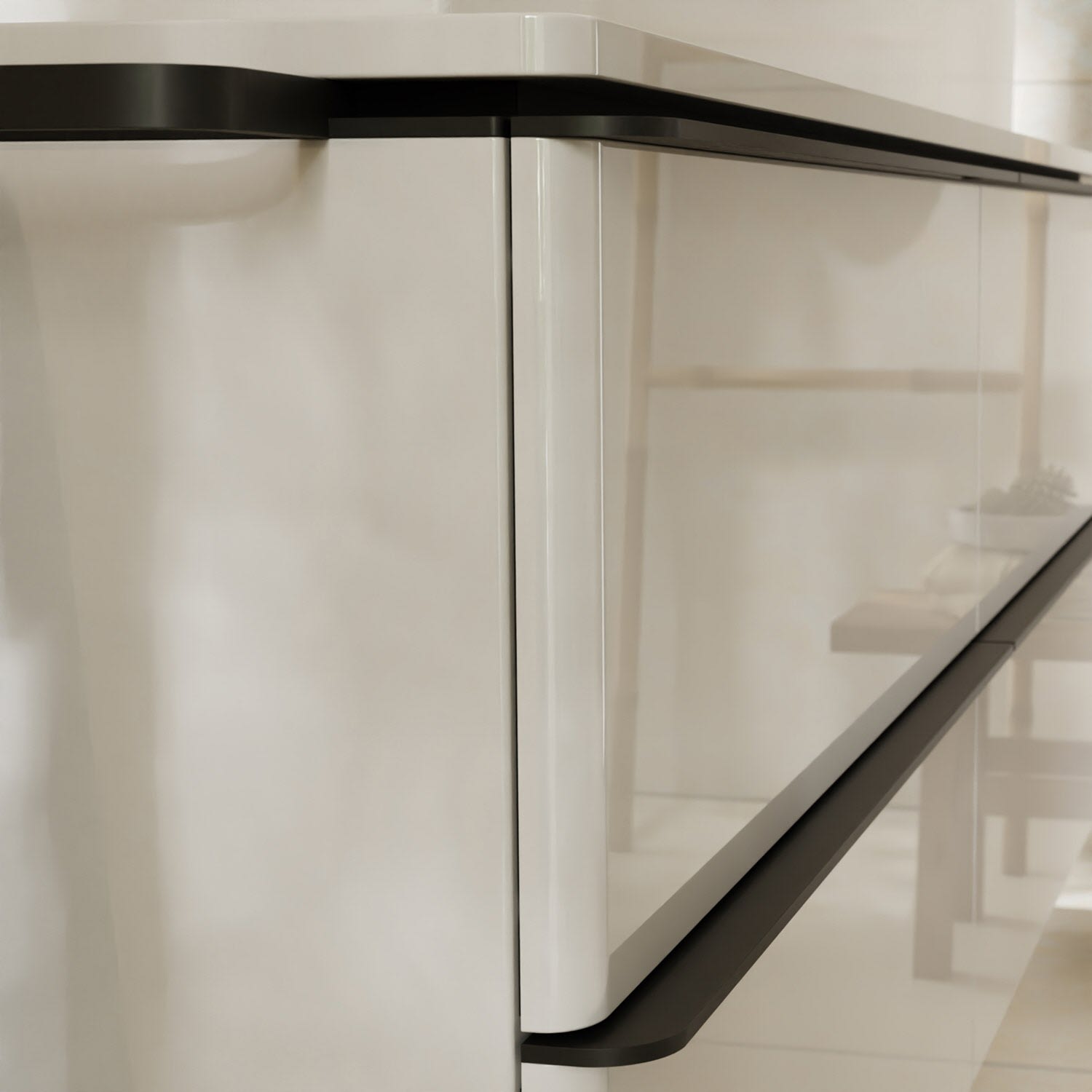 - Schattenfugenprofil (Alu mattschwarz) vorgerichtet für die Montage von Handtuchhalter und Ablage
