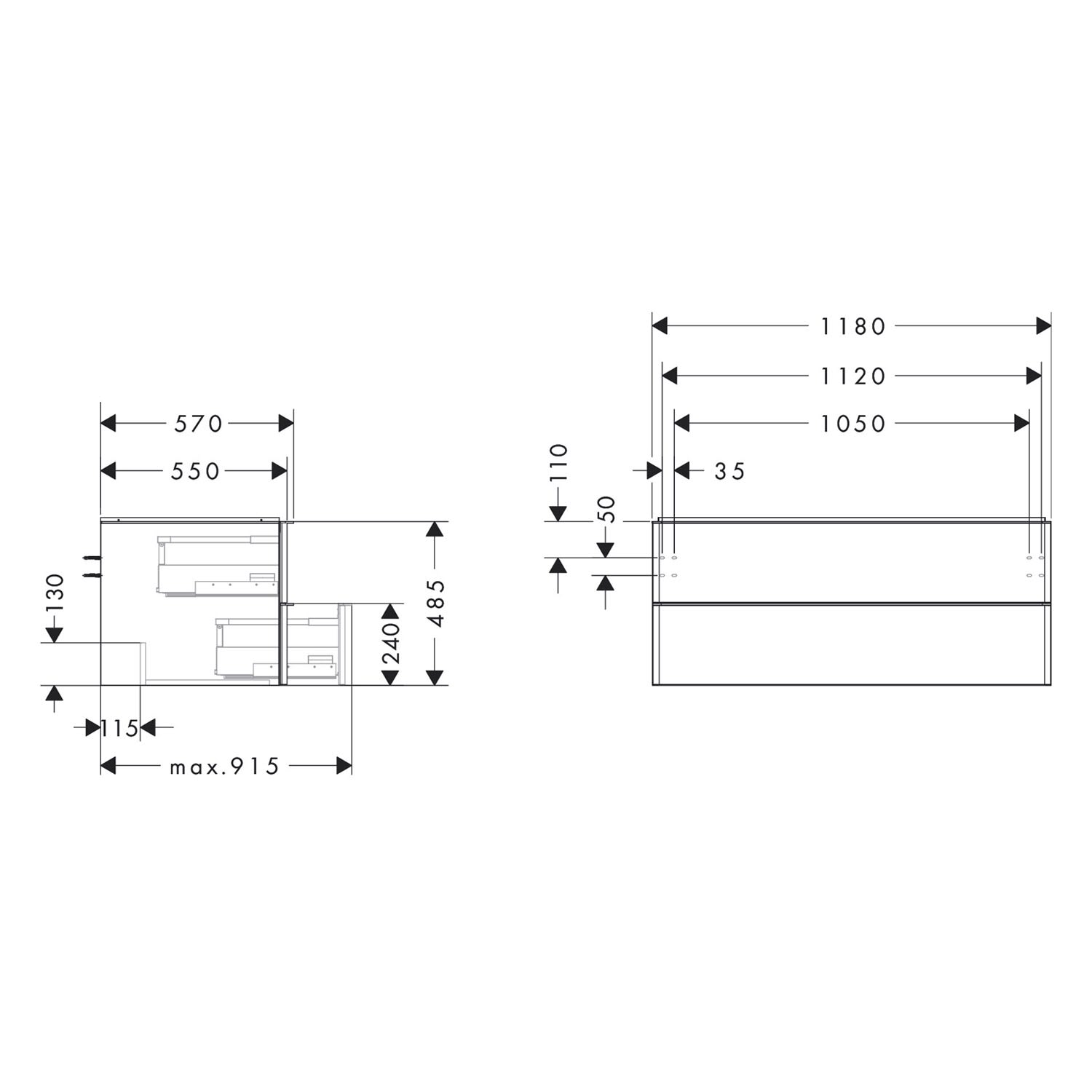 hansgrohe Xelu Q Waschtischunterschrank für Konsole 118 x 48,5 cm, 2 Schubkästen, Griff mattschwarz
