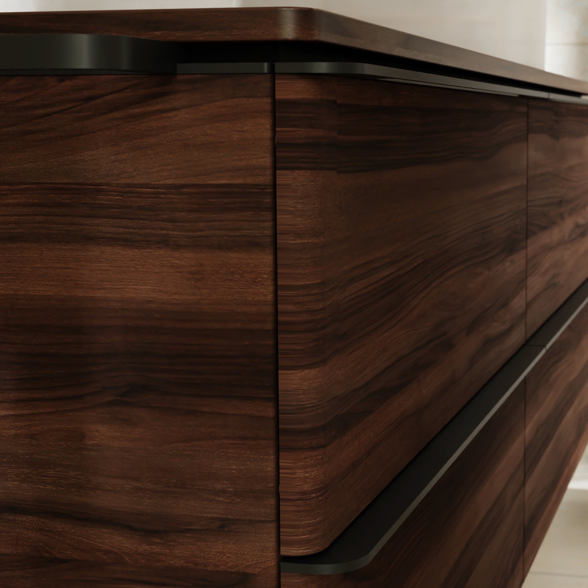- Schattenfugenprofil (Alu mattschwarz) vorgerichtet für die Montage von Handtuchhalter und Ablage