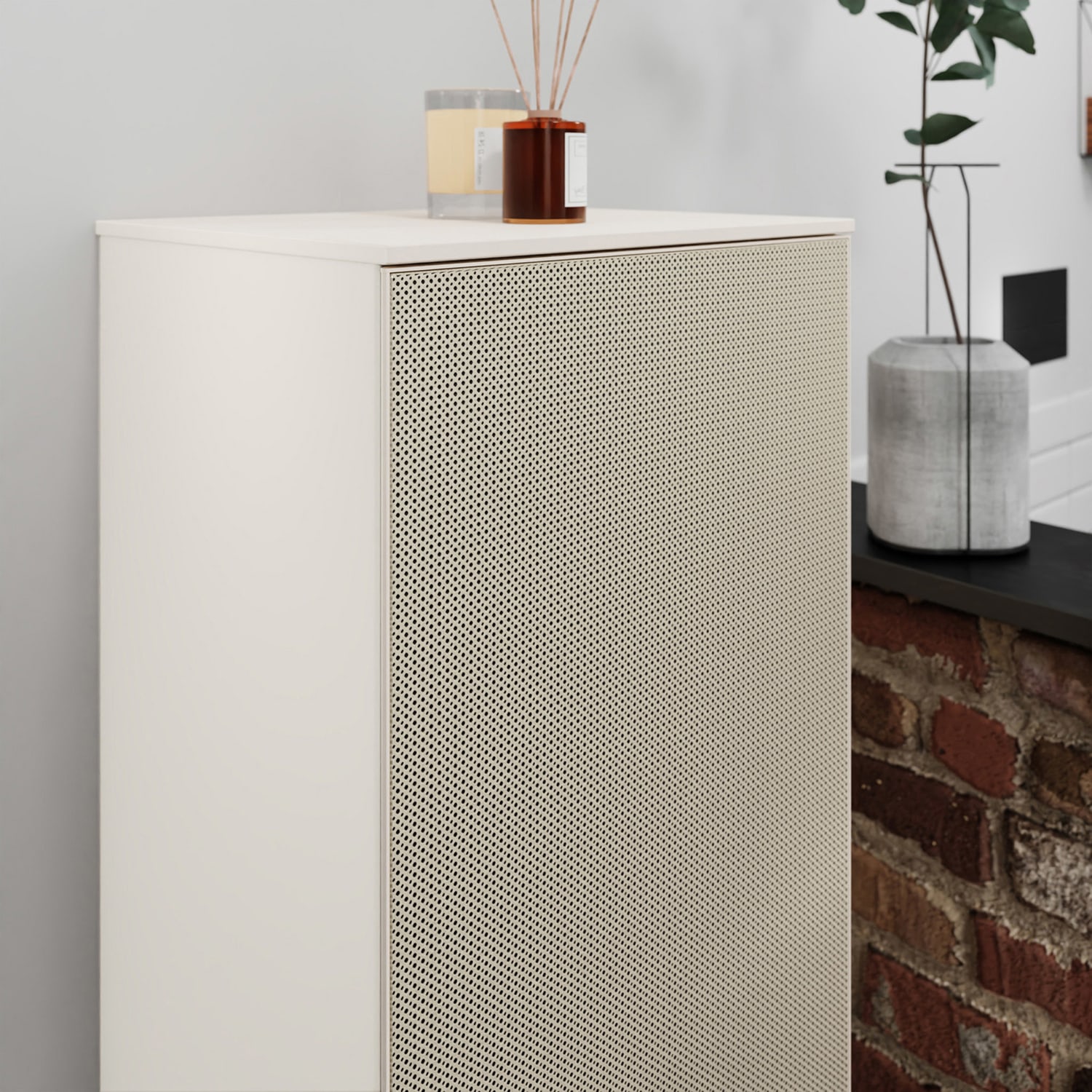 - Hinweise: Aluminiumrahmen in Korpusfarbe ermöglicht einfaches Wechseln der Fronten