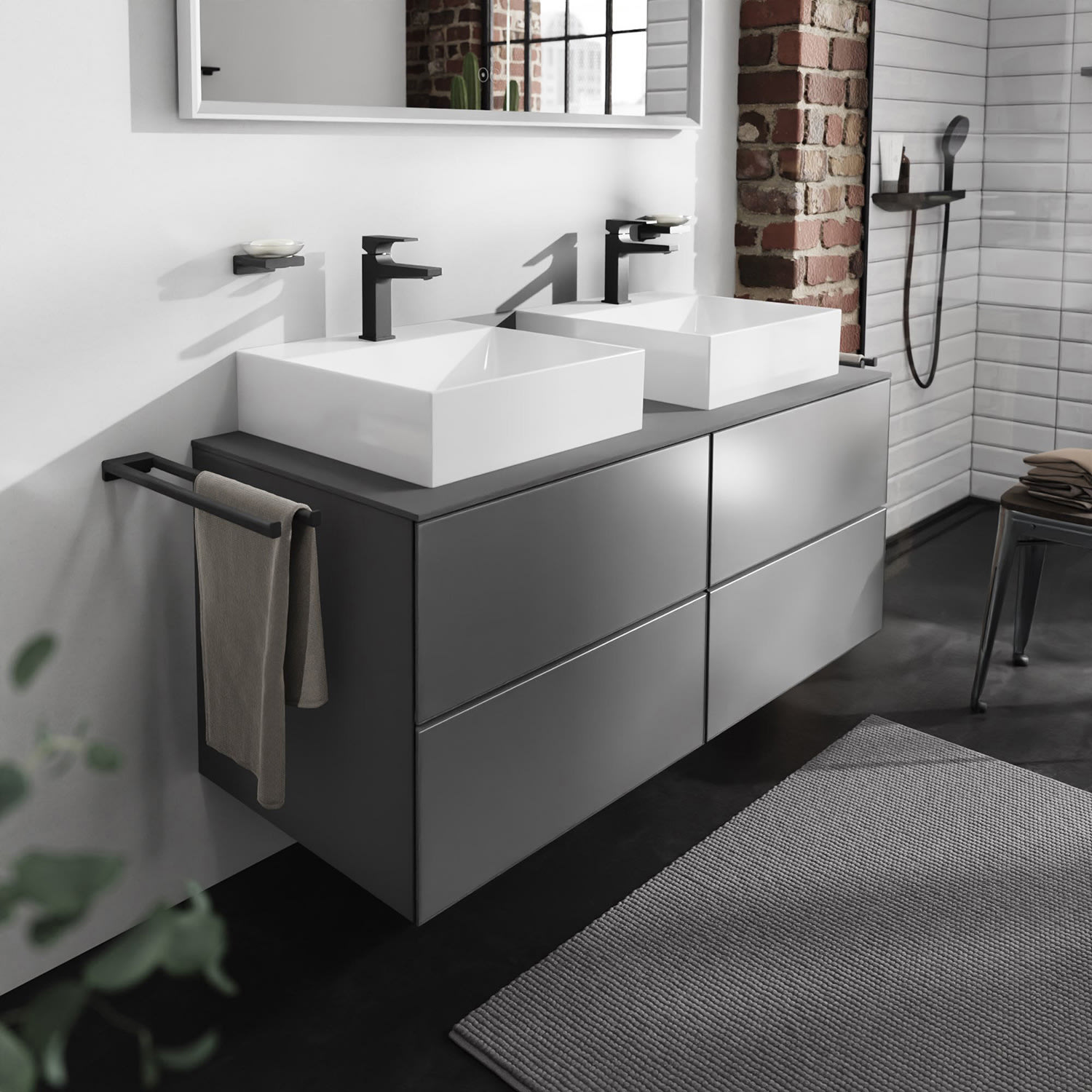 hansgrohe Xevolos E Konsole 137 x 55 cm mit 2 Ausschnitten für Aufsatzwaschtisch 50 x 48 cm