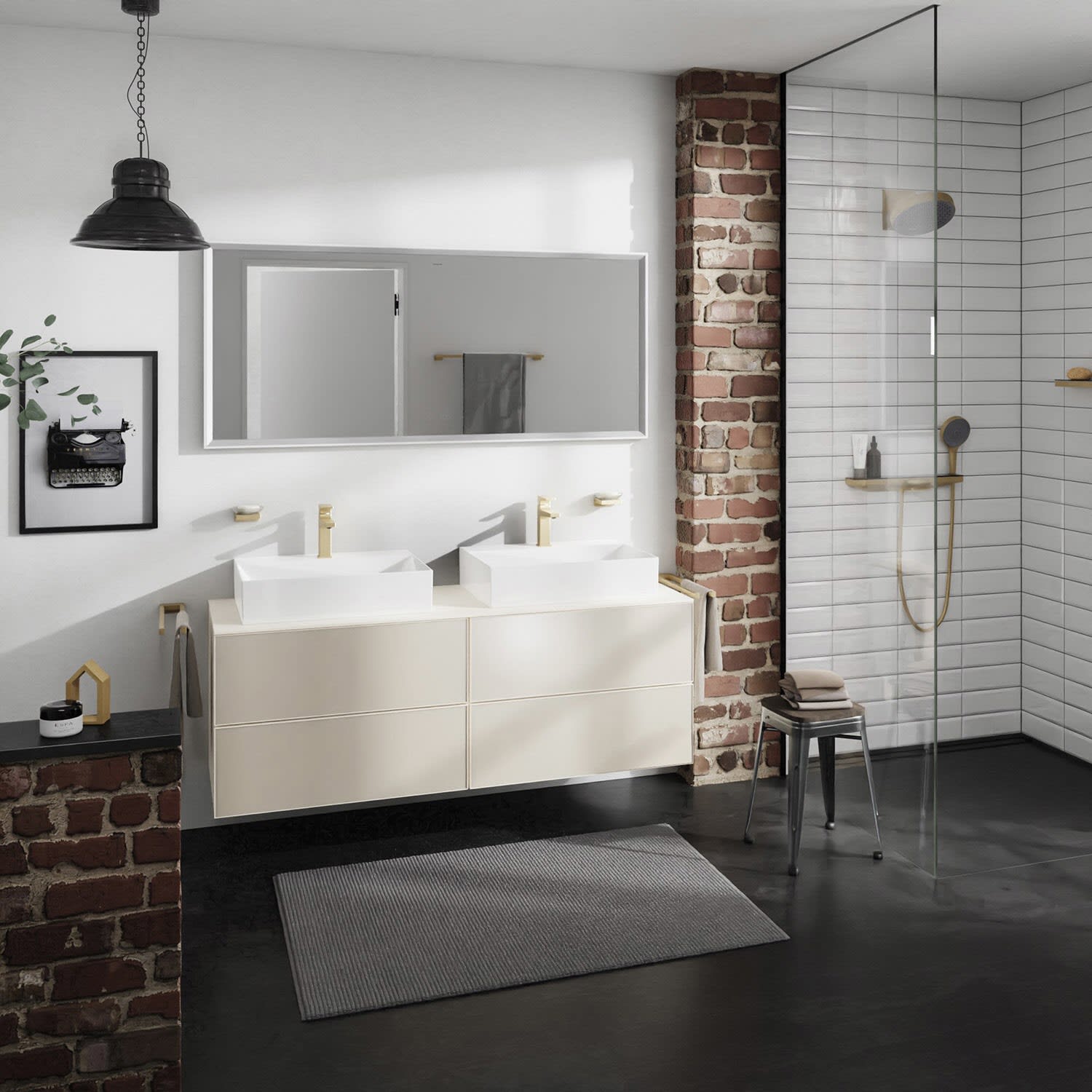 hansgrohe Xevolos E Konsole 157 x 55 cm mit 2 Ausschnitten für Aufsatzwaschtisch 60 x 48 cm
