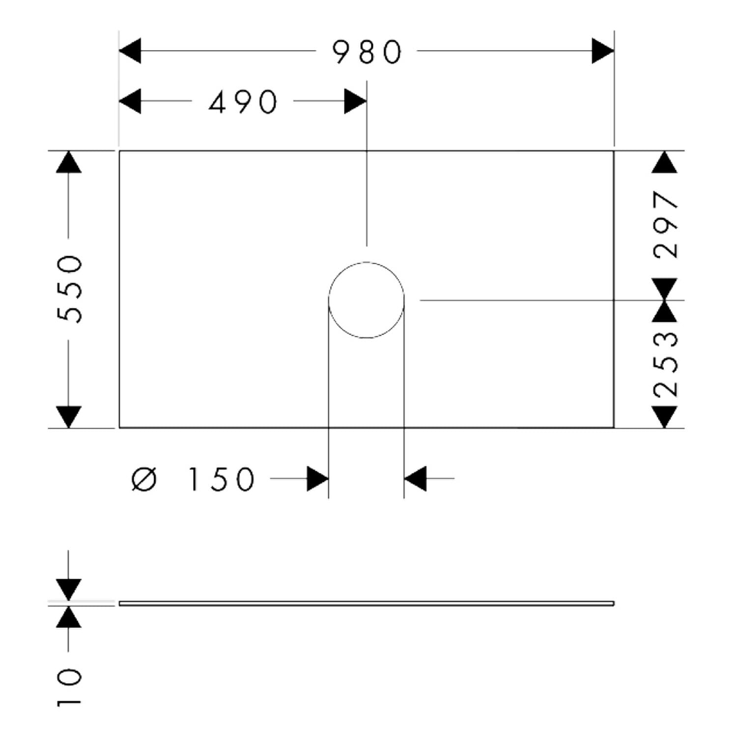 hansgrohe Xevolos E Konsole 98 x 55 cm mit Ausschnitt mittig für Aufsatzwaschtisch ohne Hahnloch