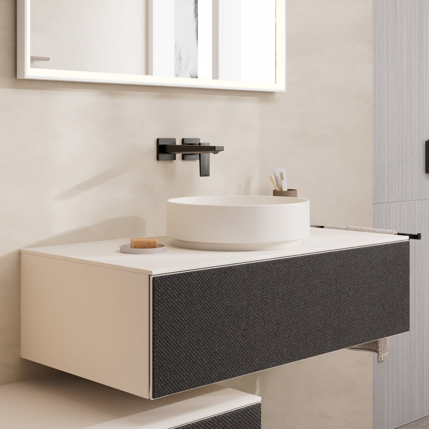 Mit Xevolos von hansgrohe verwirklichen Sie Ihre Vorstellung von einem perfekten Badezimmer. Einem Raum, in dem sich Ihre Persönlichkeit widerspiegelt. Diese Konsole verfügt über einen Ausschnitt für ein Aufsatzwaschbecken ohne Hahnloch. Sie wird mit einem Unterschrank kombiniert und erzeugt im Ergebnis ein architektonisches Design, das schnelllebige Moden überdauert und in die Zukunft weist. Der Farbton ist dabei exakt auf die Oberfläche der Xevolos Badmöbel abgestimmt.