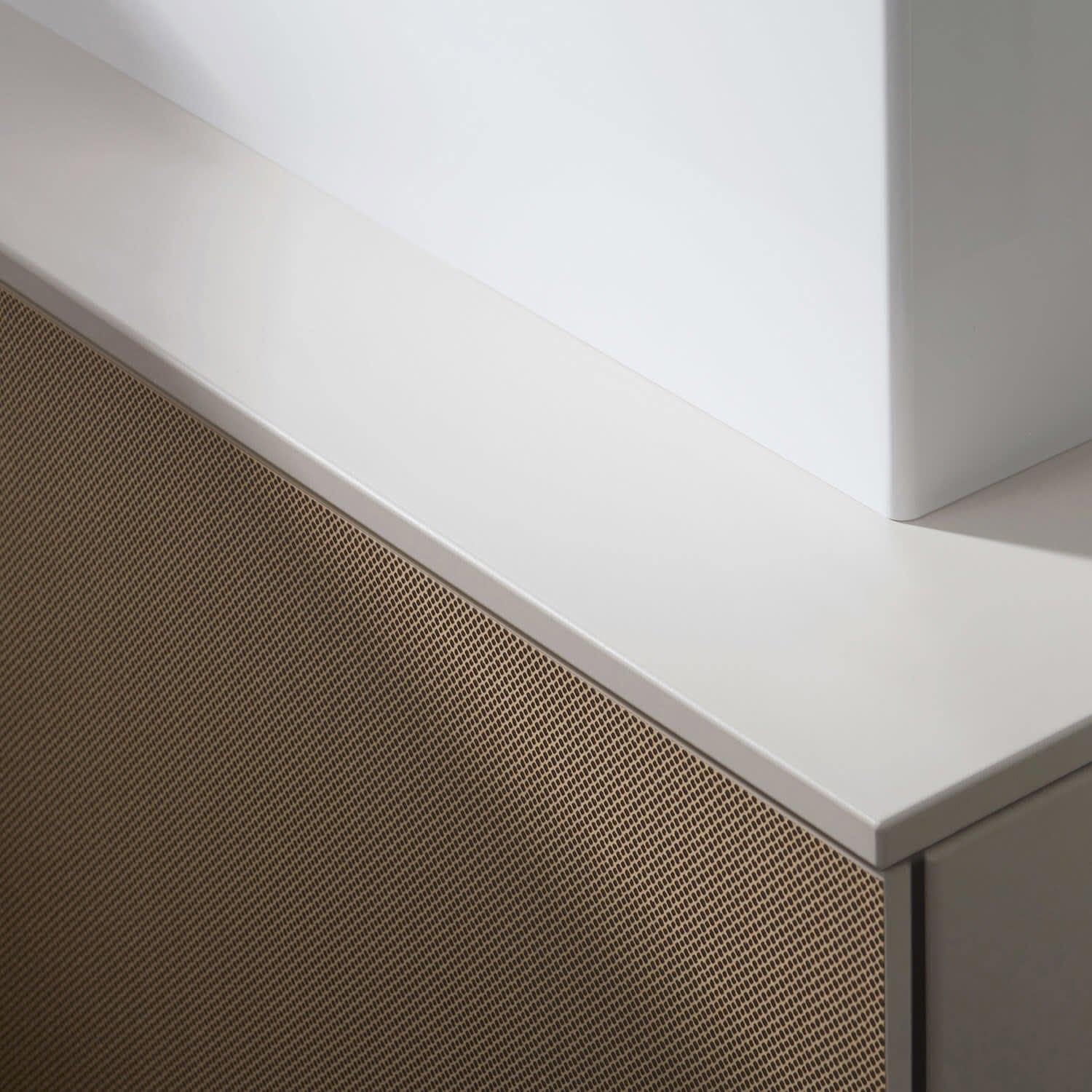 - Hinweise: Aluminiumrahmen in Korpusfarbe ermöglicht einfaches Wechseln der Fronten