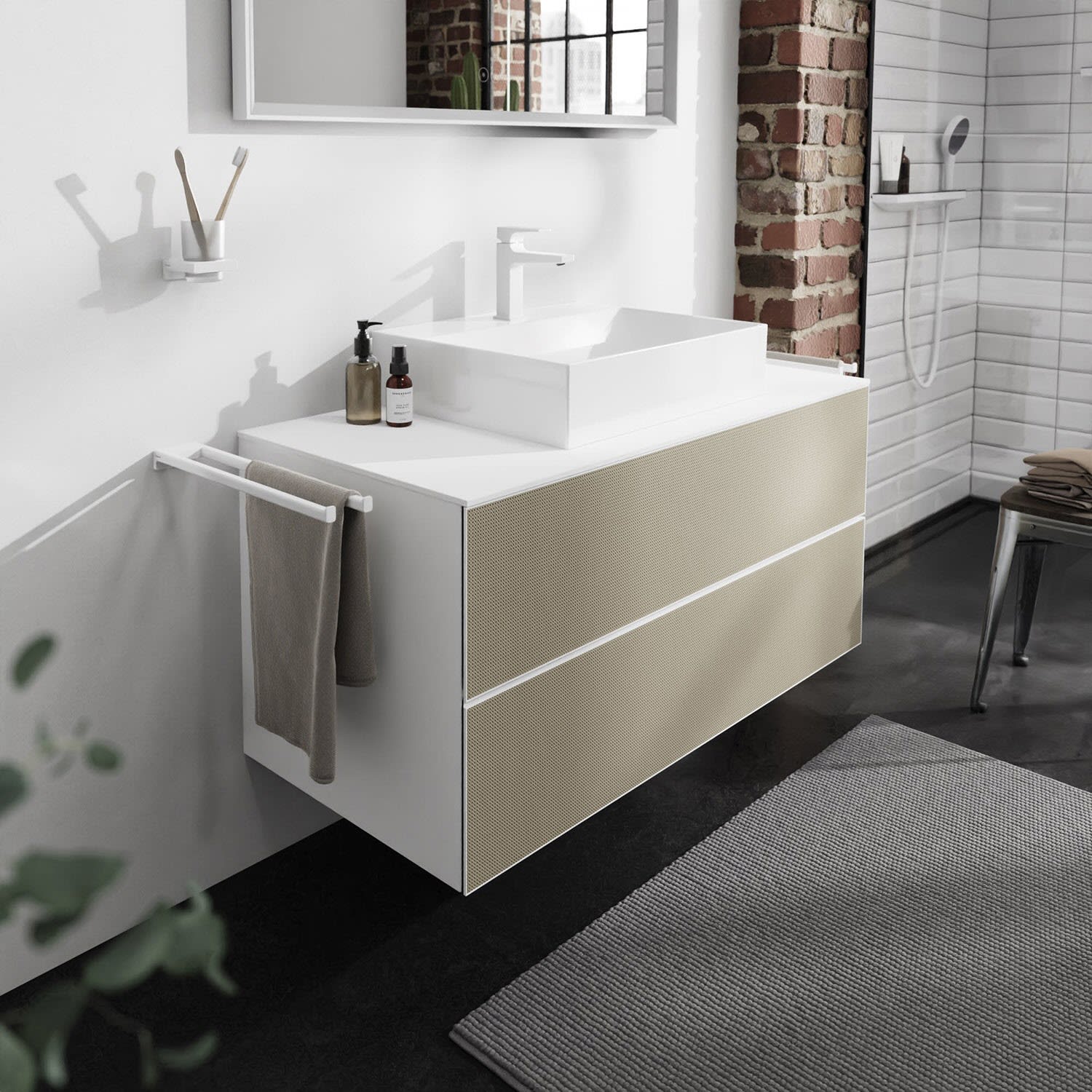 hansgrohe Xevolos E Waschtischunterschrank 118 x 55 cm mit 2 Schubkästen für Konsolen und Aufsatzwaschtisch
