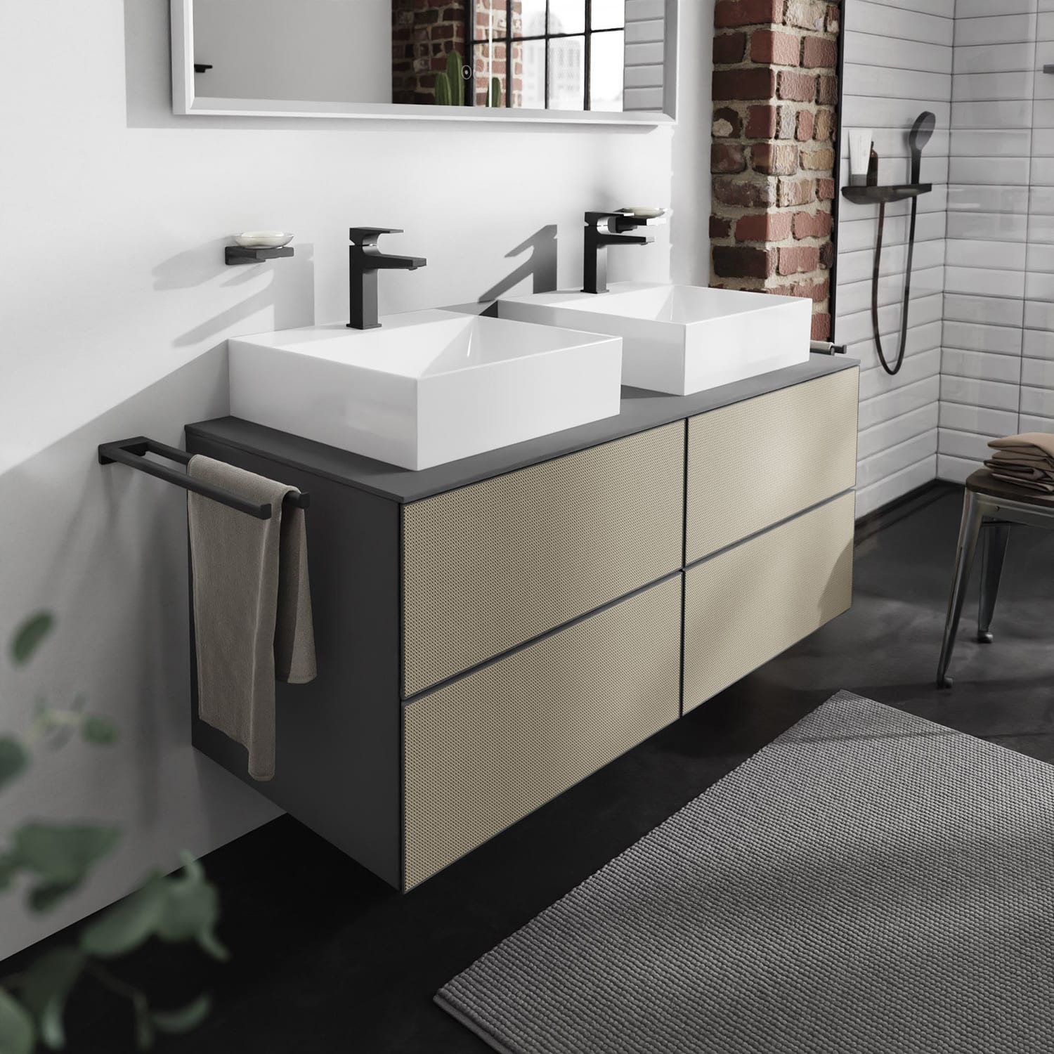 hansgrohe Xevolos E Waschtischunterschrank 137 x 55 mit 4 Schubkästen für Konsolen und 2 Aufsatzwaschtische
