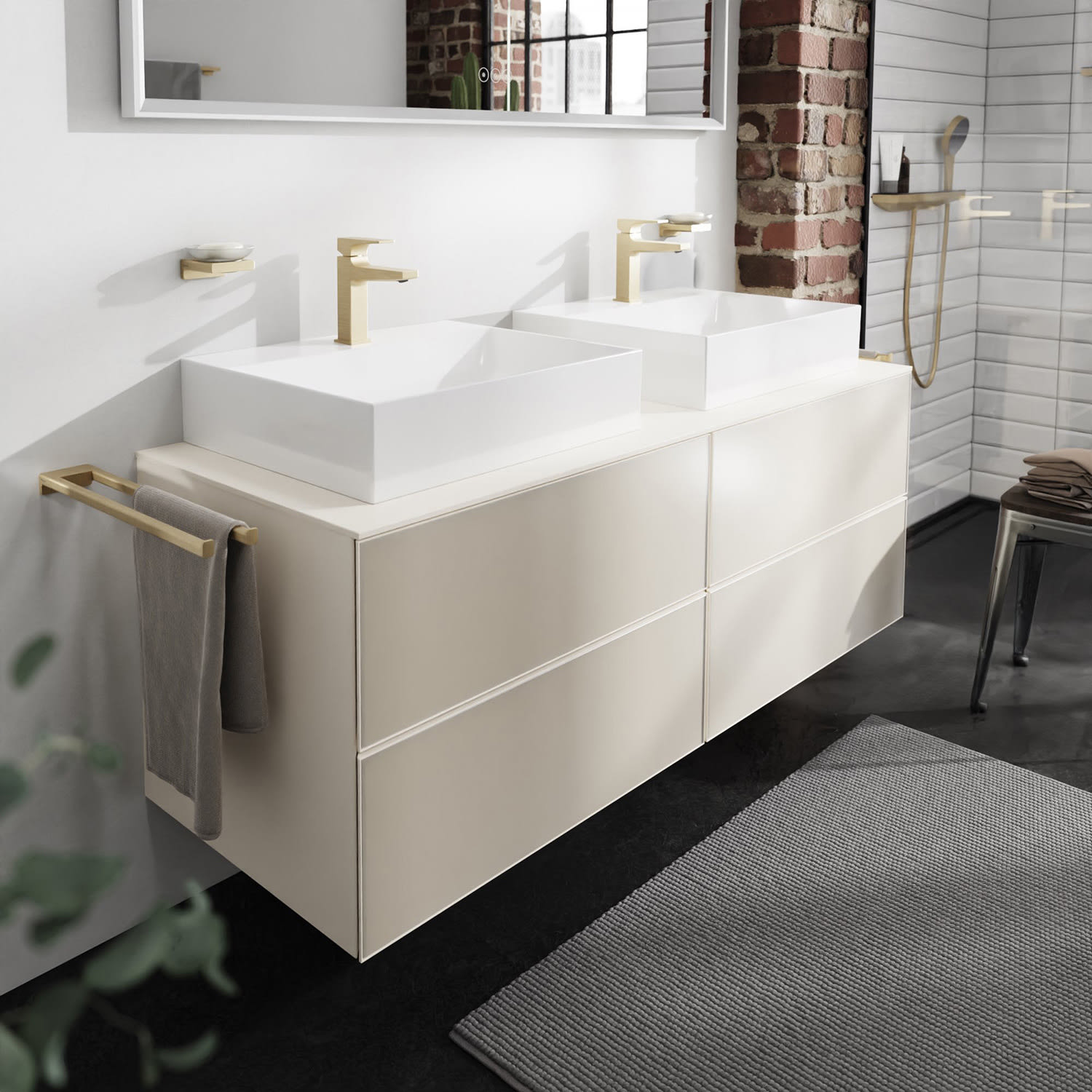 hansgrohe Xevolos E Waschtischunterschrank 157 x 55 cm mit 4 Schubkästen für Konsolen und 2 Aufsatzwaschtische