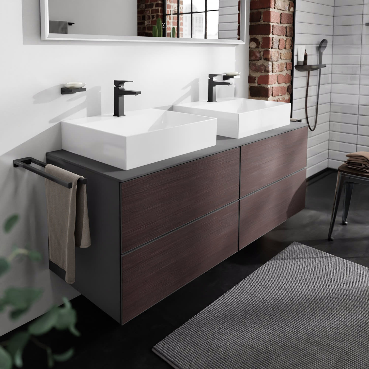 hansgrohe Xevolos E Waschtischunterschrank 157 x 55 cm mit 4 Schubkästen für Konsolen und 2 Aufsatzwaschtische